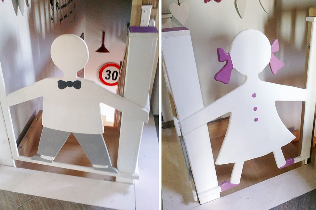 progetti realizzati a mano. Un esempio? Il cancelletto sulle scale: Angela l'ha fatto realizzare da un artigiano che ha intagliato le sagome di due bambini.
