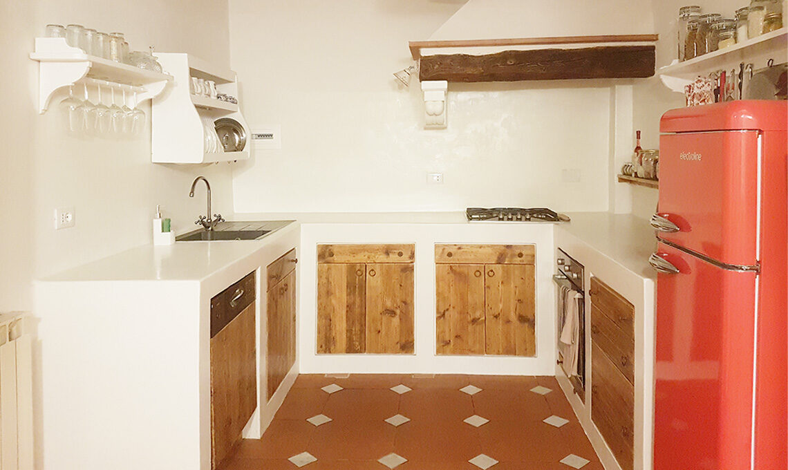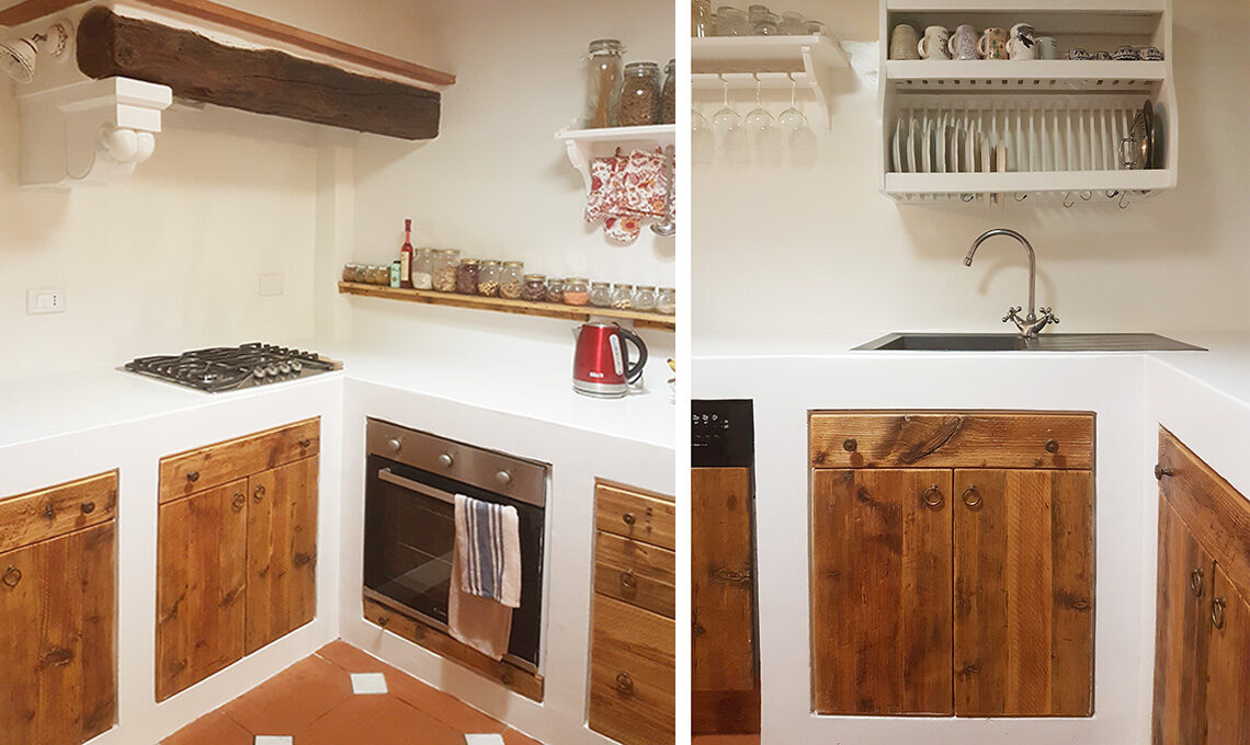 È stato un lavoro di squadra, Caterina ha realizzato il disegno, il muratore la parte muraria, il falegname delle parti in legno, l'idraulico è stato chiamato per gli allacci di gas e acqua mentre l'elettricista si è occupato delle prese.