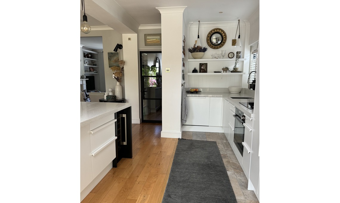 La casa ha un open space che comprende l’area cucina, pranzo, salotto, ‘garden room’ e il grande giardino. Ci sono poi 4 camere da letto, 2 uffici esterni e uno ricavato da uno spazio inutilizzato del pianerottolo del primo piano, 3 bagni e una lavanderia.