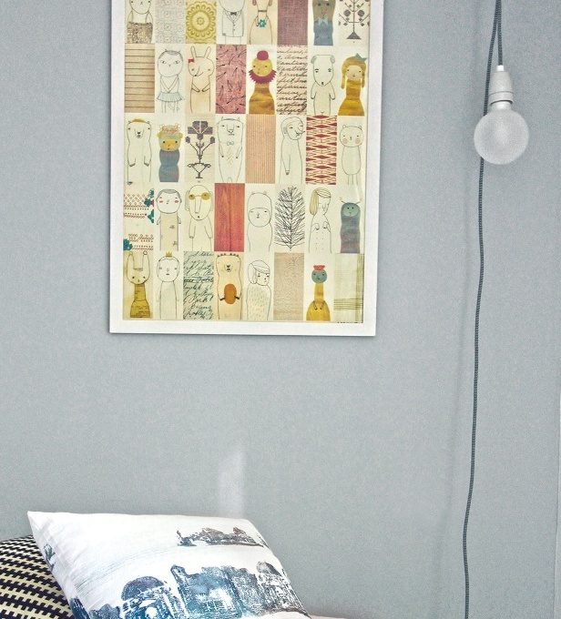 Talvolta basta poco per aggirare i classici schemi decorativi: accostare ai quadri (come Friends of Violet di Fine Little Day, qui a lato), ad esempio, ninnoli handmade e cartoline.