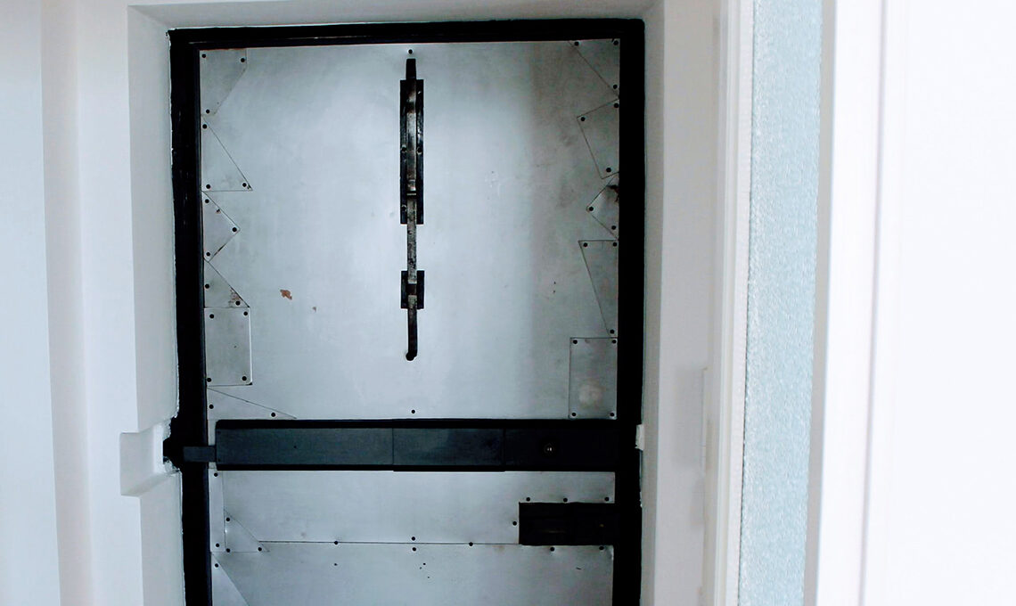 "La porta d'ingresso è una mia invenzione: con quel rivestimento in ferro volevo dare alla porta un senso di rottura con il resto. Il fermo attaccato nella parte alta della porta ovviamente... proviene da un mercatino!"
