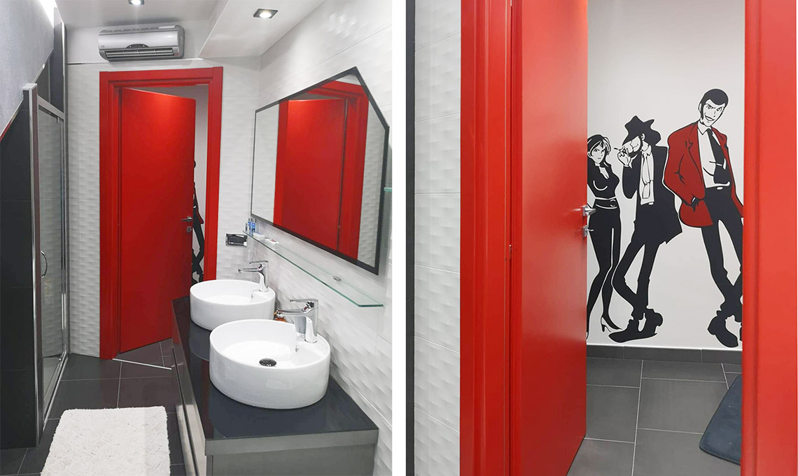 La nuova serie TV Netflix 'Lupin' ci riporta alle storie e ai fumetti di quando eravamo bambini, personaggi che sono diventati icone, tanto da diventare decorazioni in questa mansarda moderna dove regna il bianco e nero. Gli unici dettagli colorati sono gli accenti rossi ispirati proprio dalla giacca rossa di Lupin!