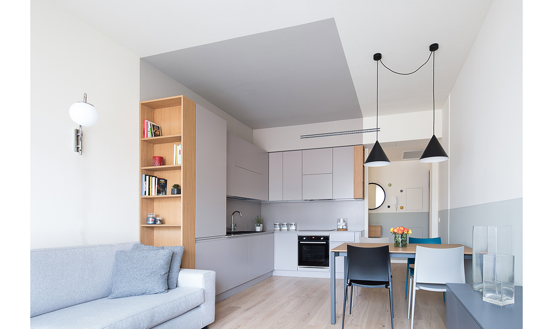 Lo Studio 5.1 Code ci ha proposto una riorganizzazione degli spazi che sfruttava ogni centimetro. Insieme a loro abbiamo poi scelto i colori (con un test sui nostri gusti!), le rifiniture (dove possibile green) e gli arredi (ci piace uno stile minimal ma caldo). Qualche dettaglio: la cucina è di Astra, il soggiorno con mobili su misura di Novamobili, le luci di Ideal Lux». Lo stile minimal risulta caldo se si aggiungono tocchi come il legno.
