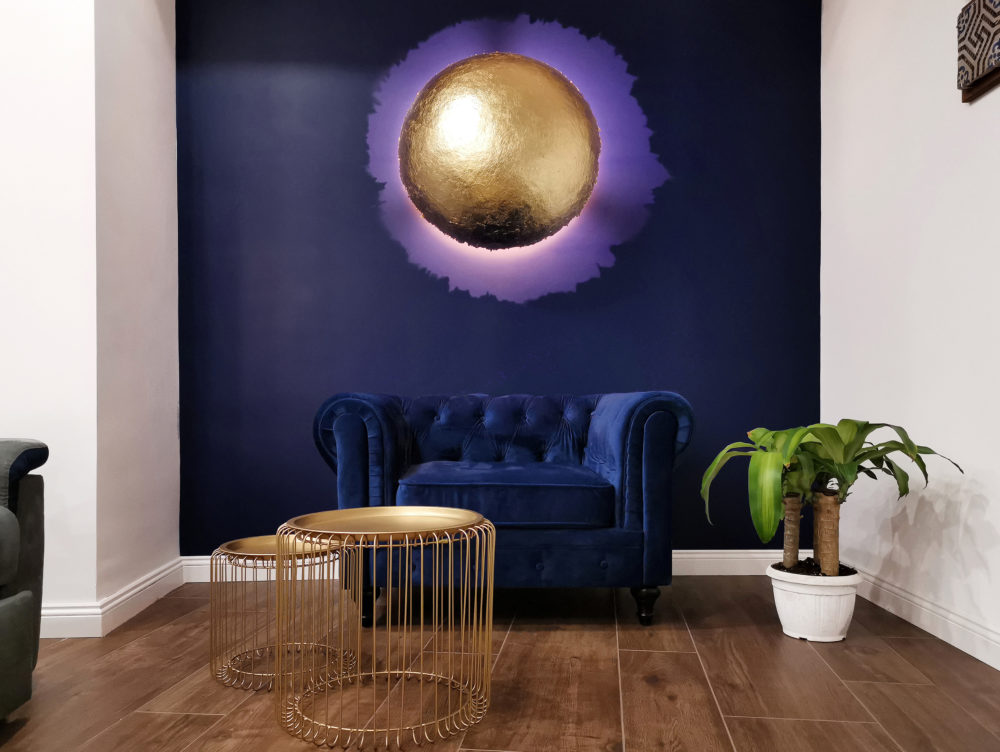 "Nella nuova distribuzione degli spazi e nell’identificazione delle diverse funzioni, si è fatto leva sul controsoffitto, sui giochi cromatici delle finiture e sull’arredo, valorizzando la nostra predilezione per il design, le carte da parati e le linee pulite ed essenziali."
