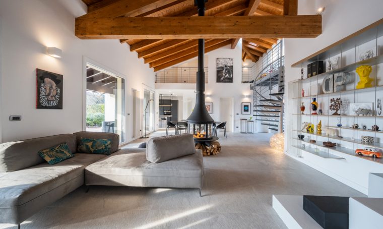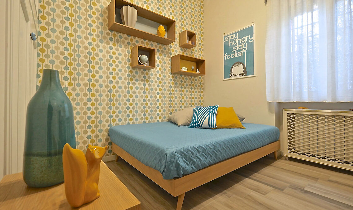 Soluzioni su misura, una illuminazione diffusa, carte da parati, rivestimenti materici, arredi di design mixati con mobili di famiglia e vintage...