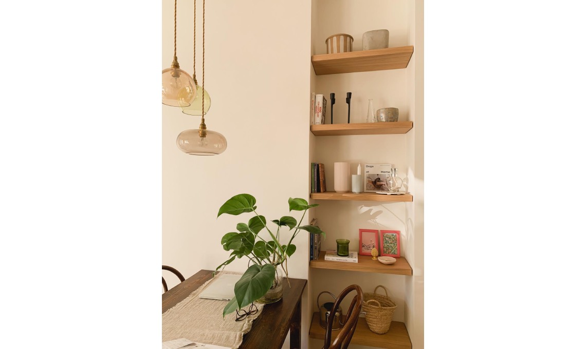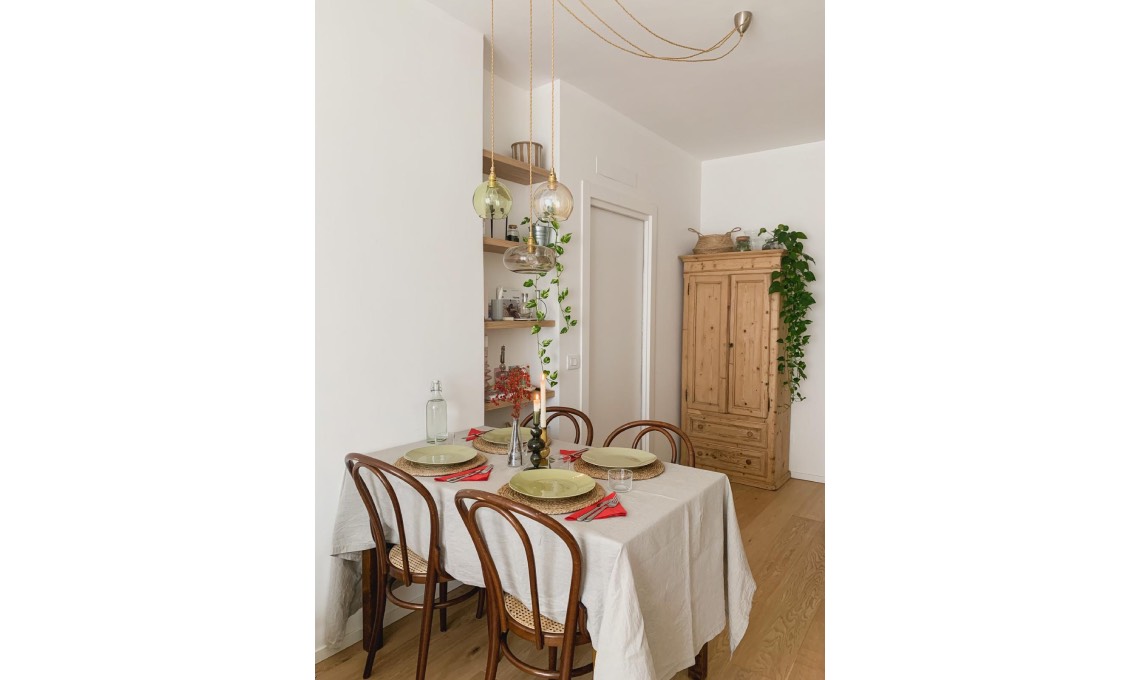 «Ho diversi pezzi di recupero che scaldano molto gli interni, tra i miei preferiti c'è l’armadio in salotto con sopra le piante» spiega Marianna. Anche tavolo e sedie seguono lo stile rétro.