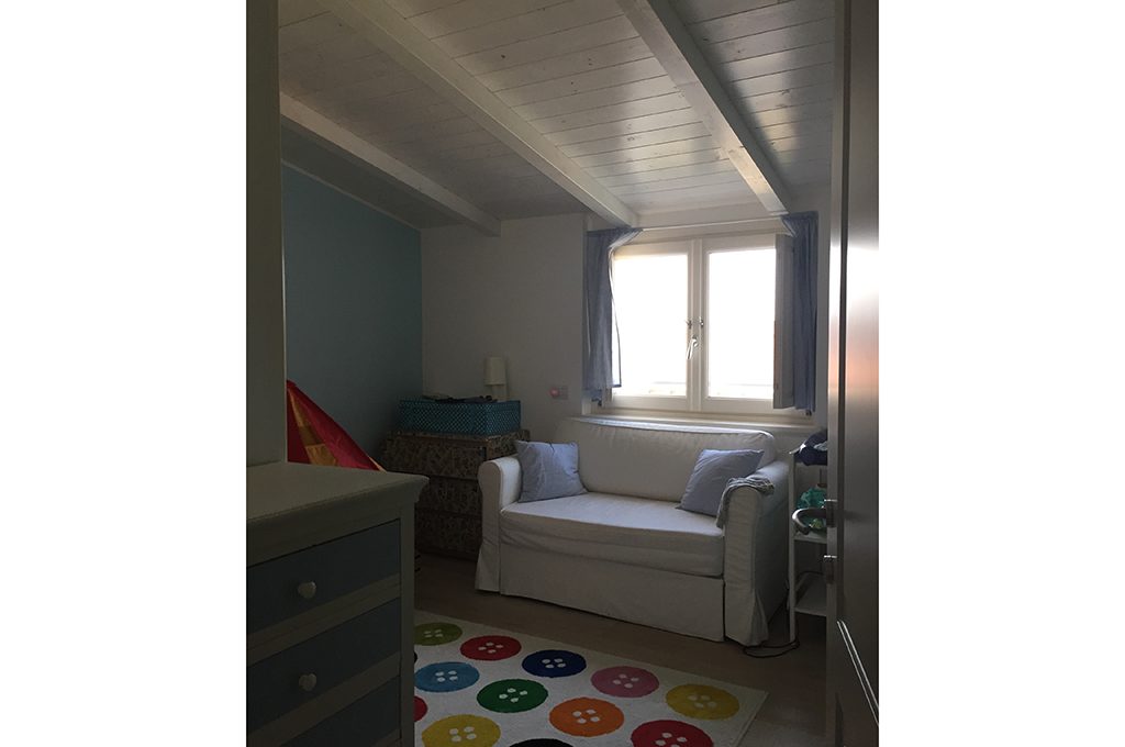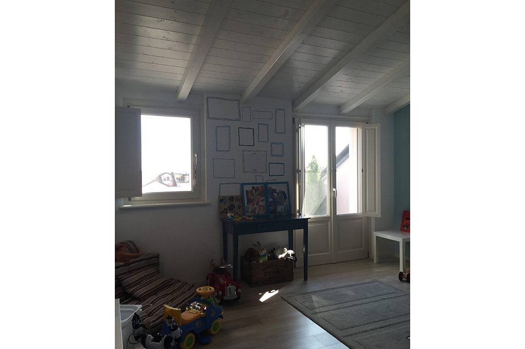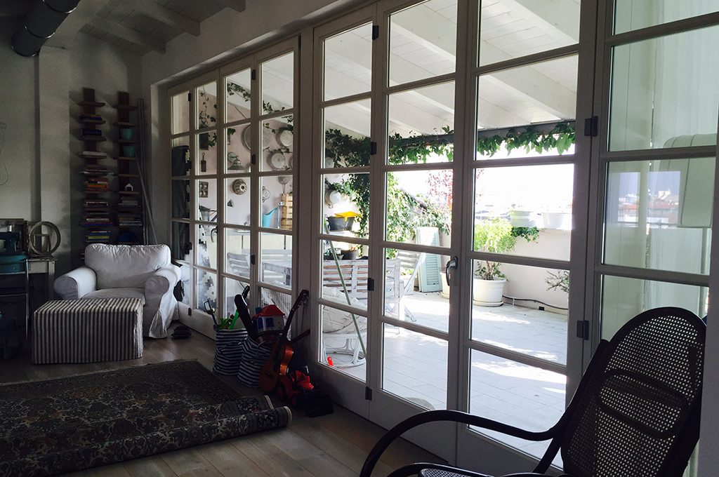 «La storia di questa casa comincia tempo fa quando abitavamo nel piano inferiore dello stesso palazzo. Siamo una piacentina e un milanese, e in quel periodo la famiglia cominciava ad allargarsi e avevamo bisogno di più spazio. Abbiamo avuto l’opportunità di acquistare il sottotetto sopra di noi e costruire la nostra casa da zero, guadagnando una vista aperta sopra le coperture milanesi, luce tutto il giorno e molto più spazio.