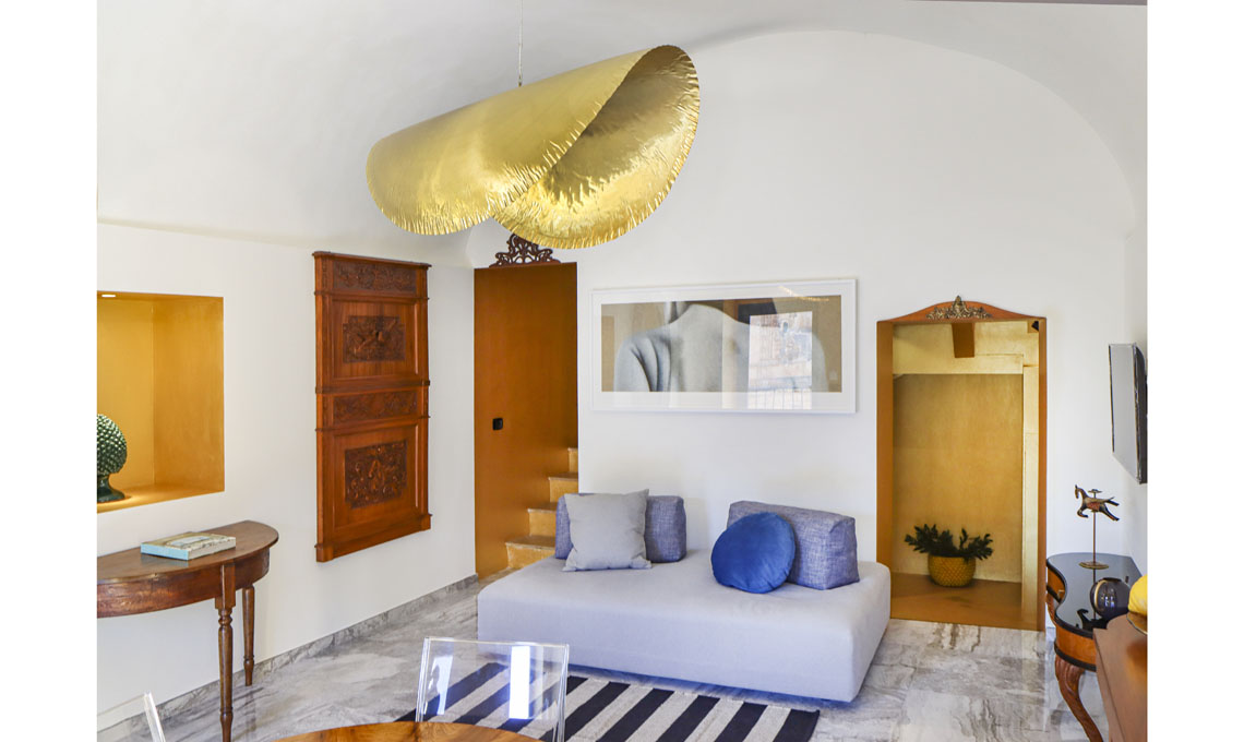 Un altro aspetto notevole è la scelta accurata degli arredi. L'antiquario e restauratore modicano Giorgio Puglisi ha fornito una consulenza sapiente, contribuendo a selezionare pezzi d'antiquariato degli inizi del '900 che si integrano perfettamente con l'atmosfera della casa. Tuttavia, il design contemporaneo non è stato trascurato. Tra gli arredi si possono ammirare pezzi come la poltrona Driade Nemo, la lampada a sospensione Brass 95 di Gervasoni e il moderno divano Ditre modello Sanders.