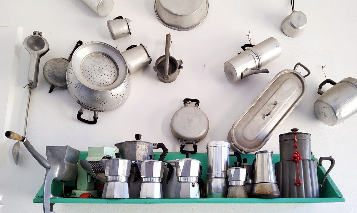 Gli arredi e le suppellettili collocati con ordine nei vari ambienti della casa riflettono l'amore dei proprietari per i viaggi e il collezionismo: dalle galline di terracotta di Letizia, che si affacciano curiose sul muretto divisorio della cucina, alle caffettiere di Aldo o alle stampe antiche concentrate sul corridoio che introduce alla zona notte.