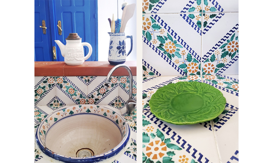 All'interno Letizia ha voluto riprendere i colori del mare, dipingendo le imposte dei grandi finestroni di un blu intenso e facendo rivestire l'angolo cucina di splendide maioliche provenienti da Santo Stefano di Camastra, uno dei maggiori centri della ceramica della Sicilia.