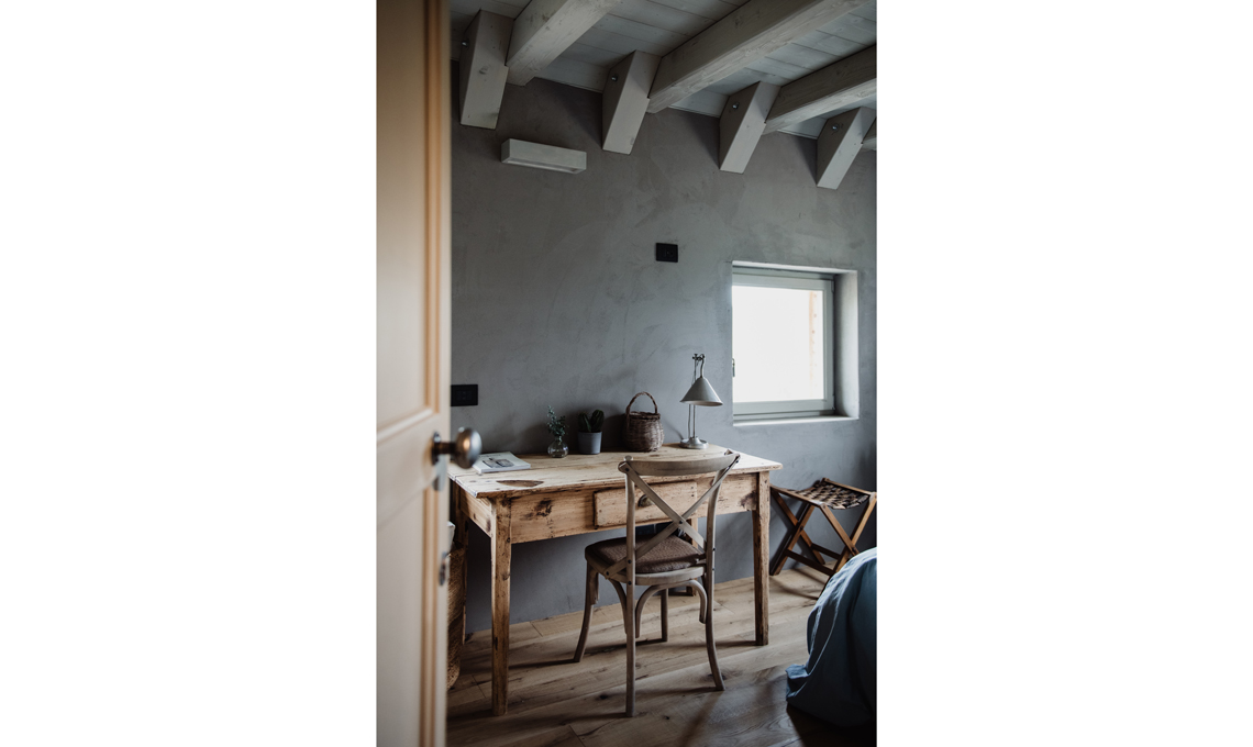 Siamo appassionati degli oggetti vecchi, che di mano in mano hanno una storia da raccontare, così la nostra casa è stata arredata con mobili di famiglia e altri acquistati nei mercatini qui e lì e poi riadattati e spesso ridipinti da noi. Così è stato fatto anche con tutte le porte che in origine si trovavano nel vecchio albergo di famiglia di Meri: amiamo dire che la nostra è una casa dal sapore antico con uno sguardo rivolto al futuro.
