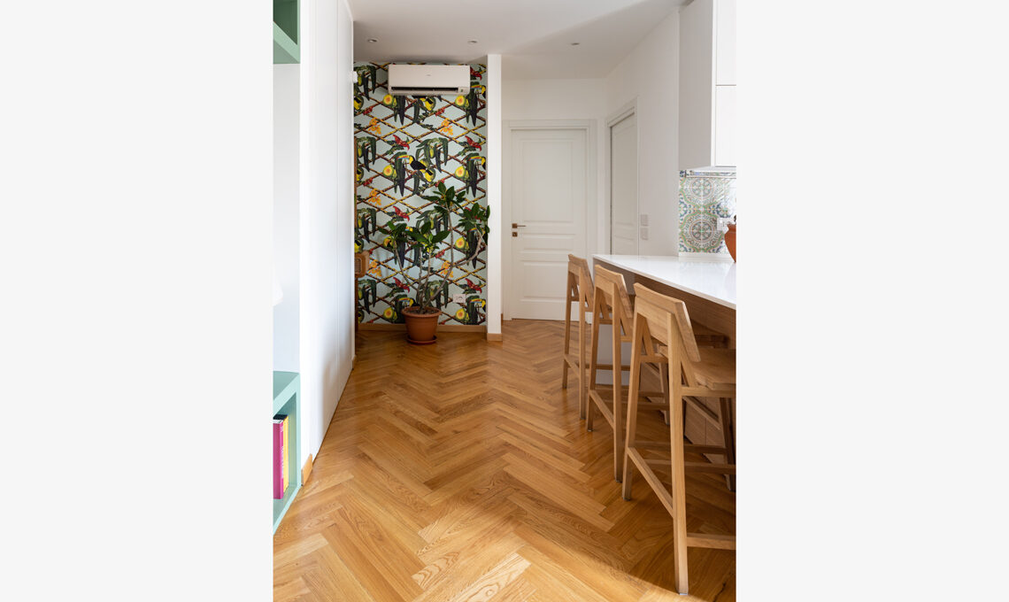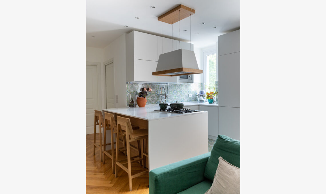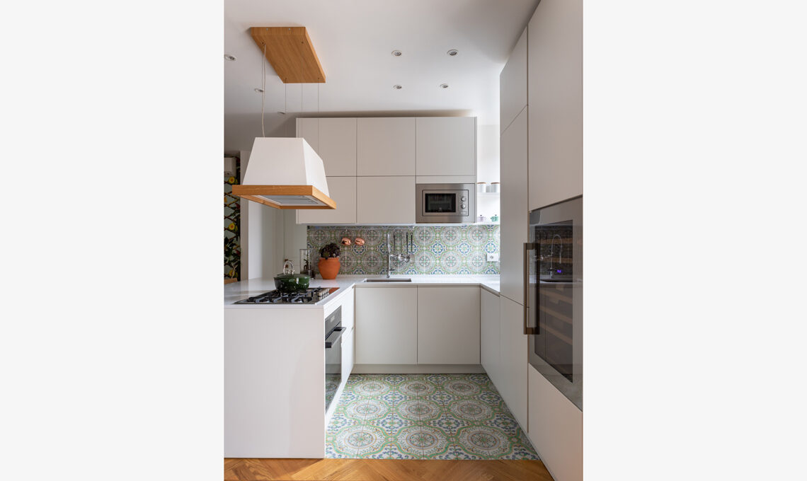 La casa è ispirata alla Sicilia (un luogo del cuore), da dove provengono le maioliche che decorano paraschizzo e pavimento della cucina, così come alcuni elementi décor, come le teste di moro. I colori vivaci sono utilizzati in modo fresco, con tanti tocchi più audaci come gli elementi in oro.