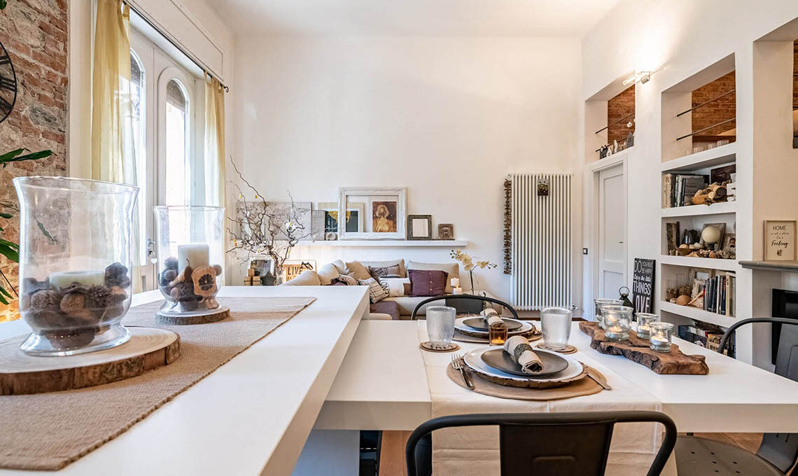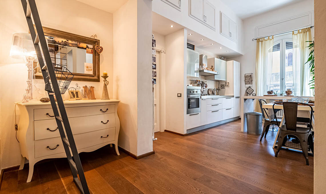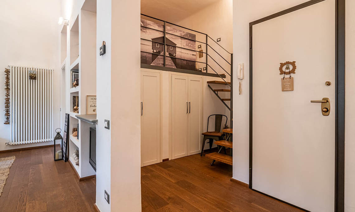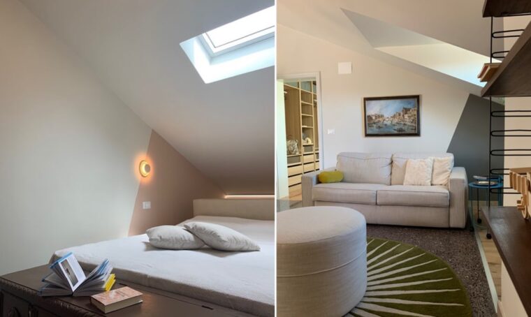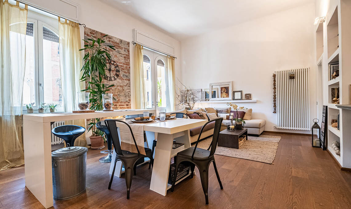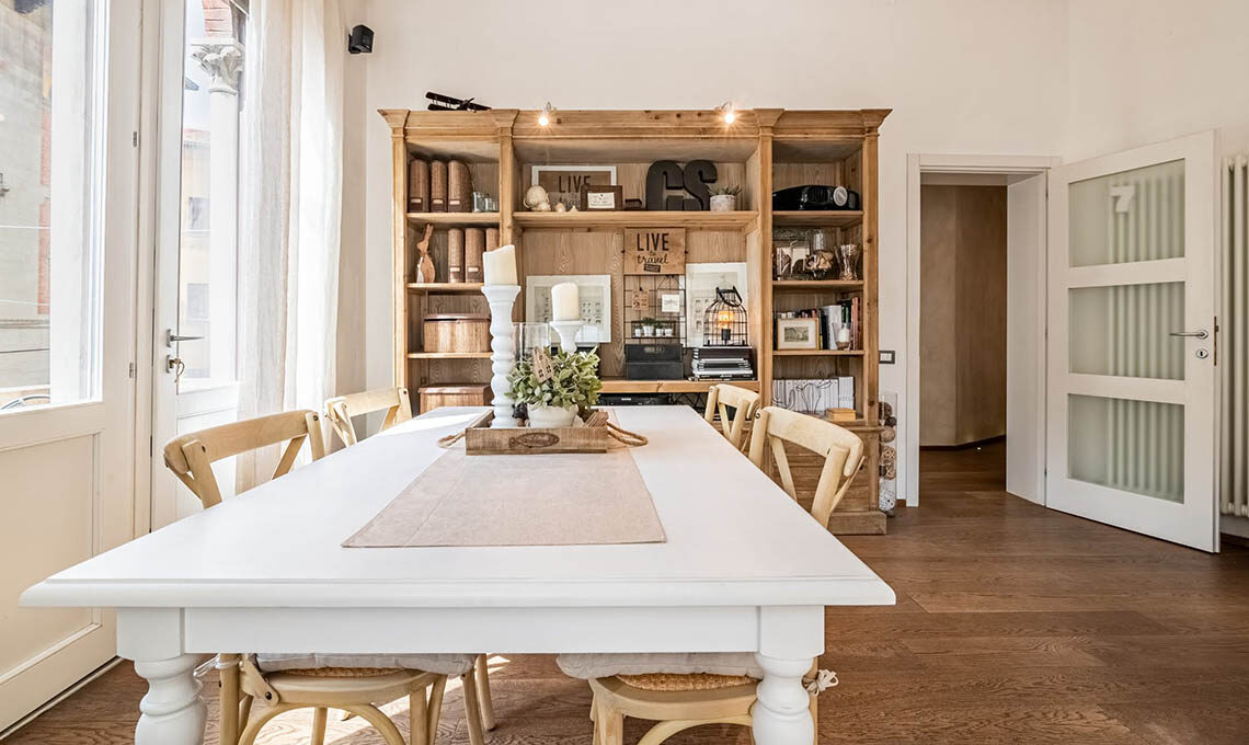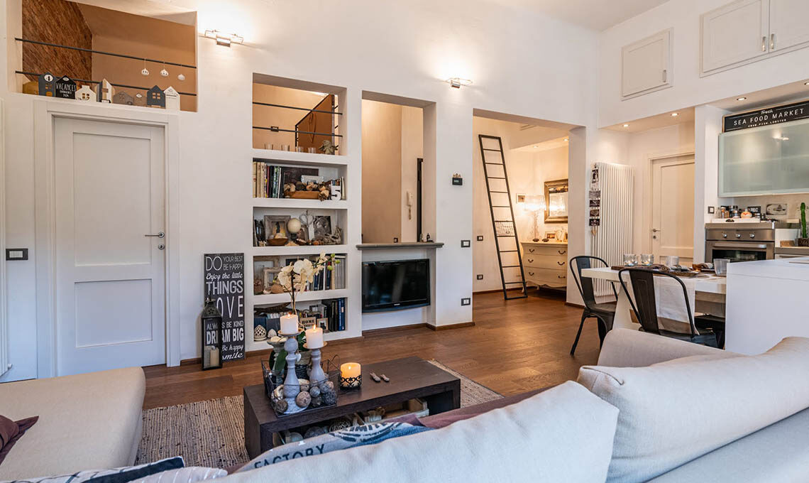 "Sono stati ricavati 2 ambienti inizialmente usati uno per ufficio e l'altro per abitazione. Da circa 4 anni saltuariamente adibisco una porzione per gli affitti brevi. Mi sono occupata del consolidamento, della ristrutturazione, della nuova distribuzione interna, del cambio di destinazione d'uso (da uffici ad abitazione), della redazione delle pratiche edilizie, della direzione lavori e dell'intero arredamento, dal disegno delle porte interne alla scelta di tutti i complementi d'arredo e dei mobili."
