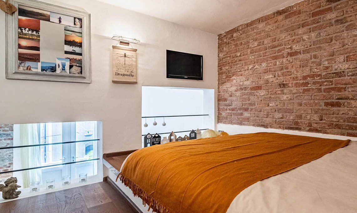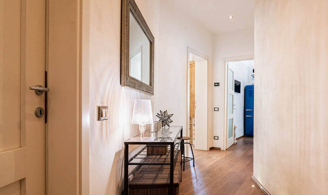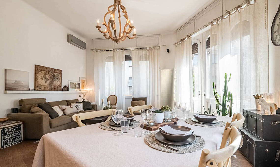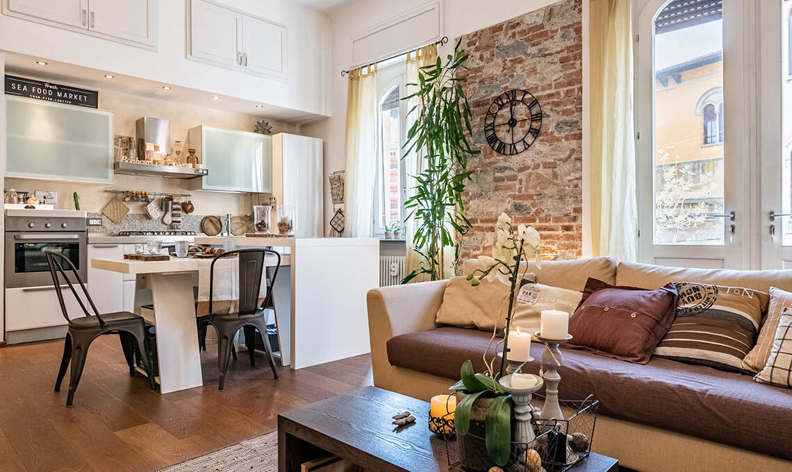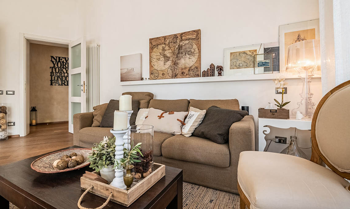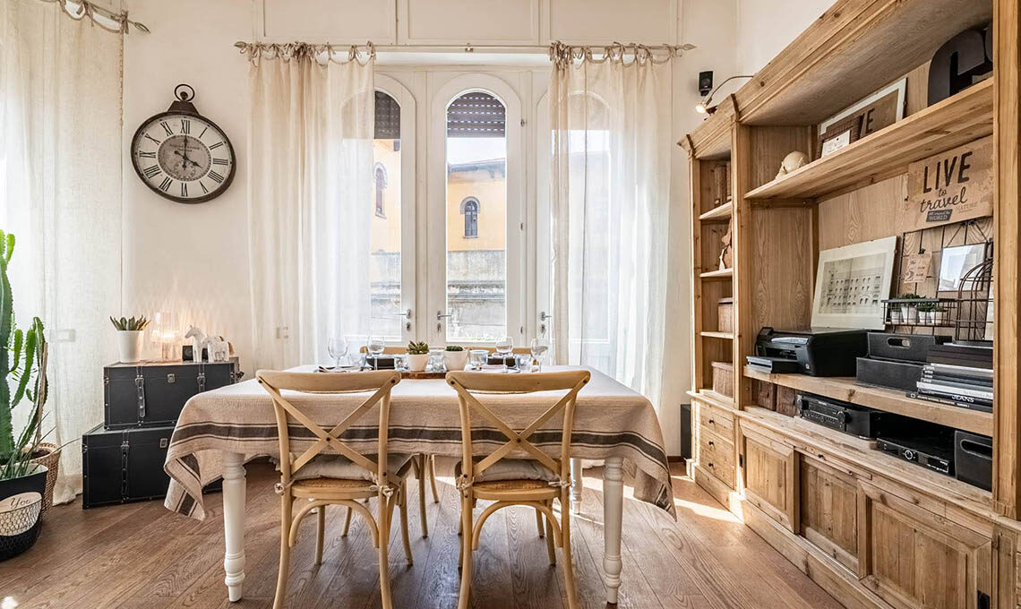 "Sono stati ricavati 2 ambienti inizialmente usati uno per ufficio e l'altro per abitazione. Da circa 4 anni saltuariamente adibisco una porzione per gli affitti brevi. Mi sono occupata del consolidamento, della ristrutturazione, della nuova distribuzione interna, del cambio di destinazione d'uso (da uffici ad abitazione), della redazione delle pratiche edilizie, della direzione lavori e dell'intero arredamento, dal disegno delle porte interne alla scelta di tutti i complementi d'arredo e dei mobili."