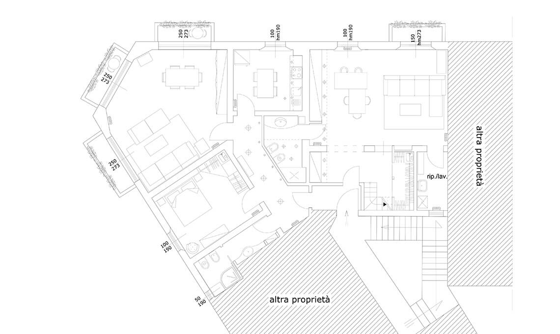 "Avendo a disposizione dei soffitti così alti ho cercato di ottimizzare al massimo lo spazio abbassando a m 2,70 o 2,40 i disimpegni, i ripostigli, gli antibagni e sopra i pensili delle cucine per ricavare spazio utile in altezza per riporre bagagli, cambio di stagione, addobbi natalizi..."