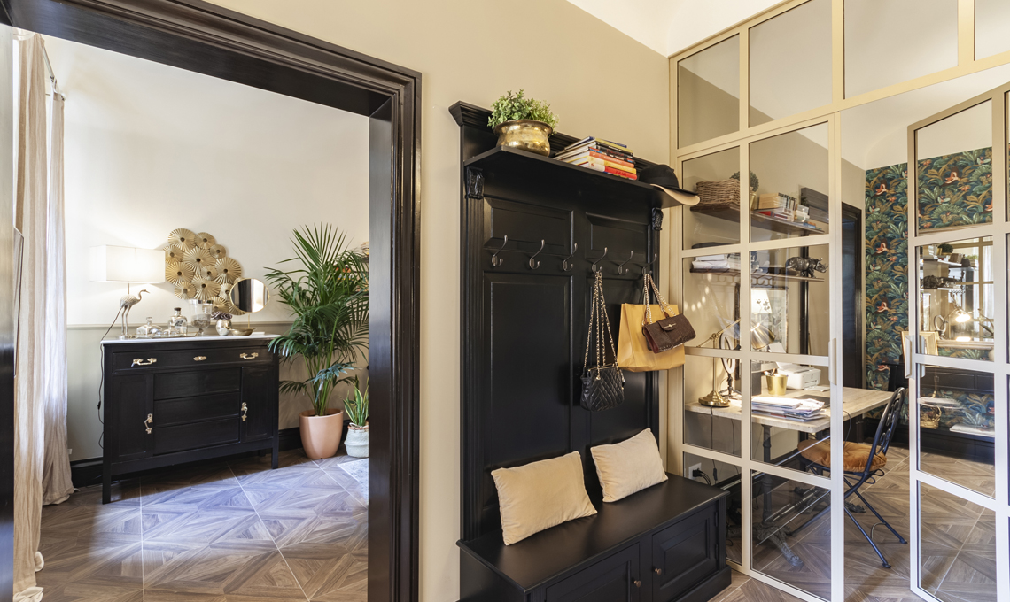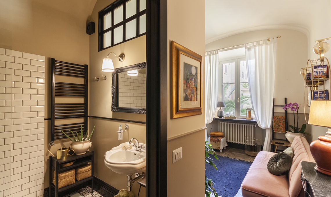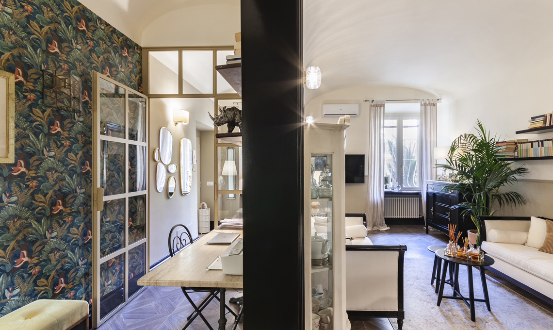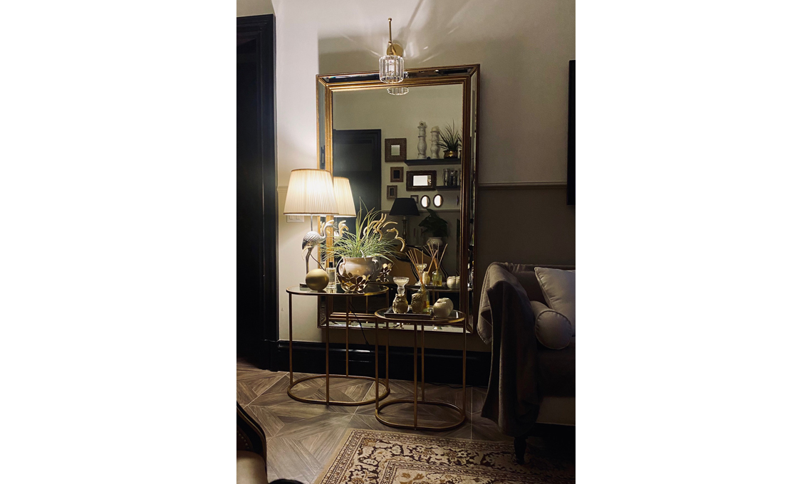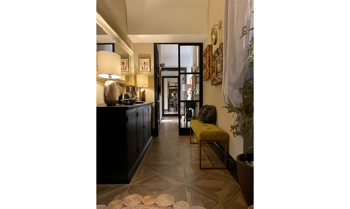 Appena si attraversa la soglia, l'osservatore si trova di fronte a tanti dettagli raffinati e pezzi unici. Alice ama collezionare specchi e luci, spesso provenienti da mercatini vintage e negozi di antiquariato. Ogni elemento all'interno della casa ha una storia da raccontare, che aggiunge profondità e significato a ogni angolo.