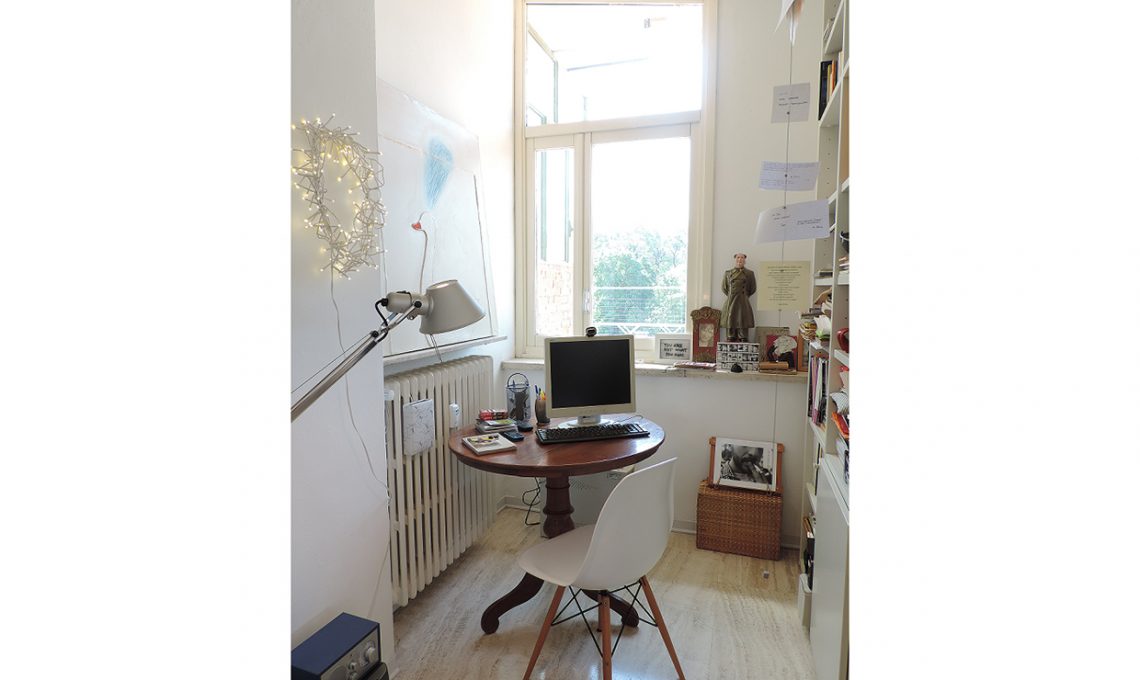 È una casa piena di luce dove si crea molto, si disegna, si fotografa, si chiacchiera e si ride (e si piange, anche: si vive!) E si aspetta con ansiosa gioia le giornate di sole e le serate tiepide per mangiare sulla grande terrazza».