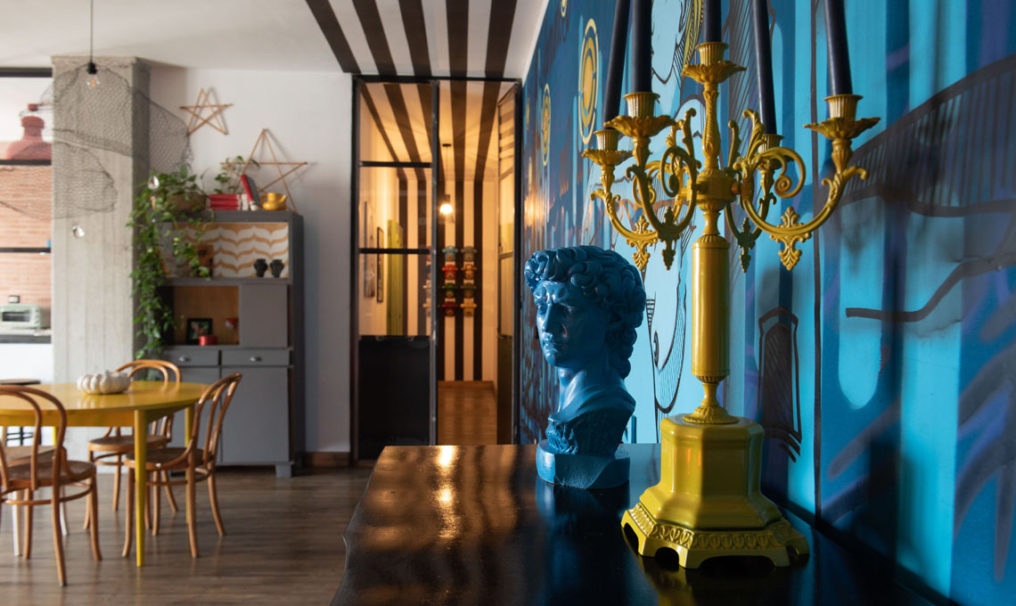 L'appartamento si trova a Montecorvino Rovella, nel salernitano, dove ho iniziato la mia attività di restyling. Sono la progettista e l'esecutrice dei lavori. L'obiettivo era di realizzare una casa che mi rappresentasse e che fosse al tempo stesso un biglietto da visita.