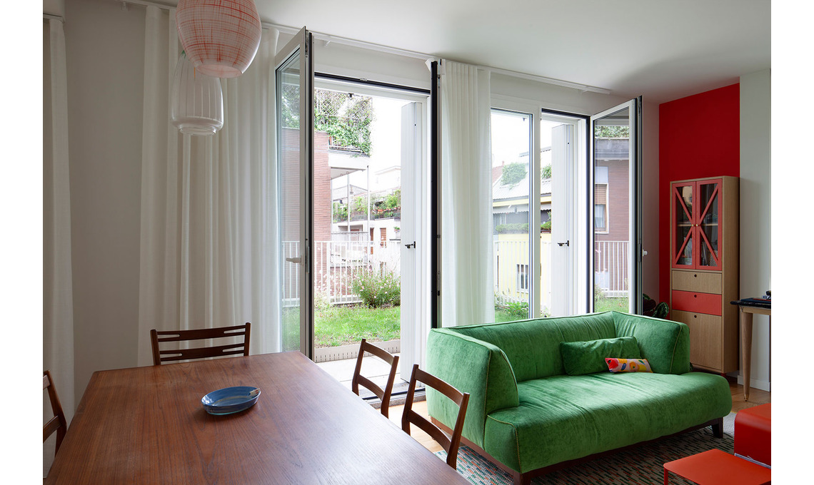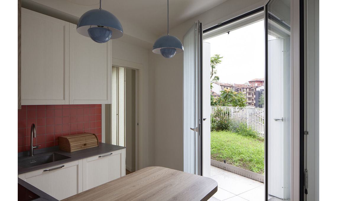 La casa di Paola ha generosi affacci sul verde e sui terrazzi, che danno continuità tra in & outdoor e nella bella stagione permettono di dilatare lo spazio interno.