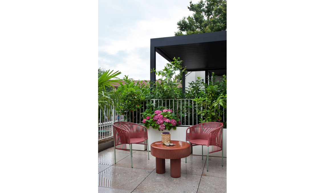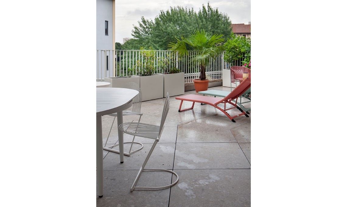 Accanto al tavolo per outdoor dove in estate Paola organizza i pranzi con gli amici, le sedie in metallo recuperate dalla zia paterna: nonostante l'età, appaiono ancora molto moderne e leggere. Sono il modello Swing disegnato da Herbert Owl per Rosenthal Lübke.