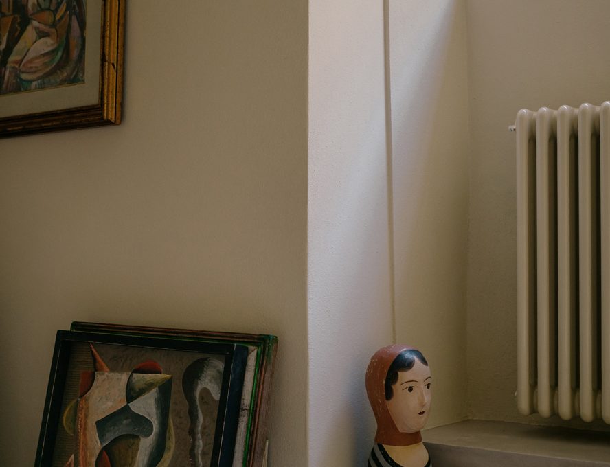 La casa di Leonardo è dotata di tutti i comfort moderni, mescolati con elementi storici, come una vecchia fonte battesimale, un pozzo e tanti arredi recuperati.