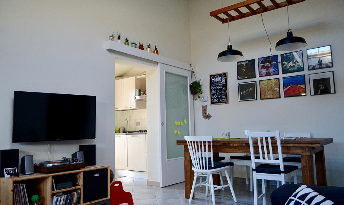 «Quello che rende speciale la nostra casa sono i mobili, la maggior parte dei quali costruiti dal mio babbo, tappezziere in pensione con la grande passione del legno. Per noi ha creato pezzi unici su misura, funzionali e di altissima qualità. Quello che più amiamo di questi arredi è proprio l'aspetto artigianale che li rende unici, e arricchiti di un enorme valore affettivo.