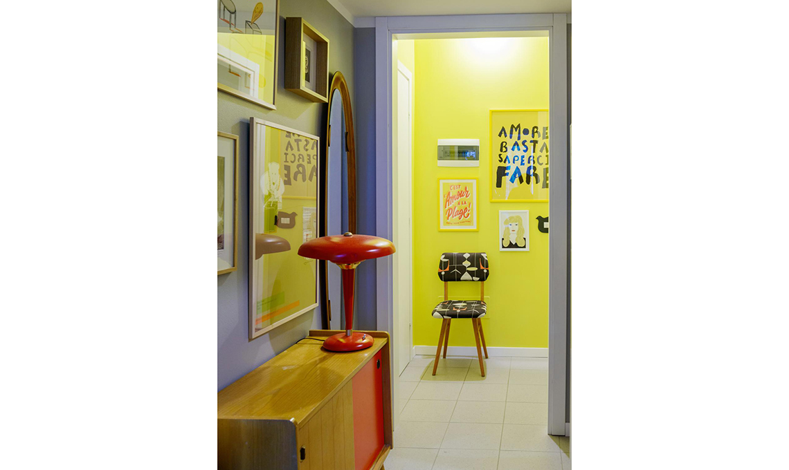 I pavimenti in marmo nero, in palladiana e le marmette della cucina sono stati il punto di partenza del restyling. Il mood scelto da Sara gioca con un tripudio di colori forti, i pattern fantasy delle wallpaper, inserti vintage, oggetti cari e mobili di recupero trasformati a colpi di colore... e di creatività!