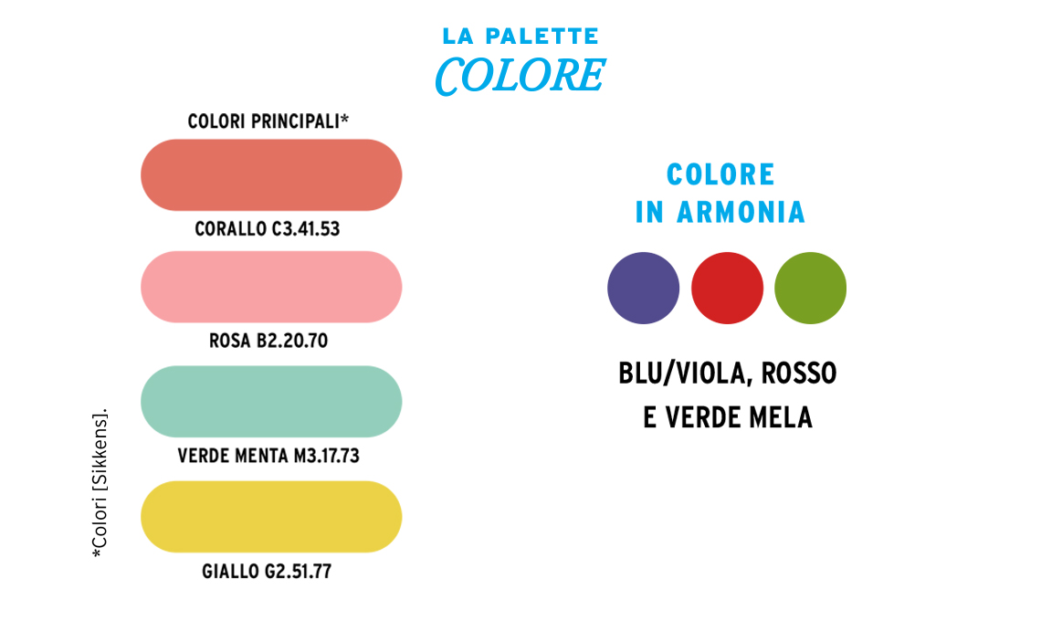 Contrasti forti, tra colori bold e pattern fantasy vestono le stanze. Il rosa salmone accende il nero lucido del marmo e gioca con il blu copiativo. I complementari verde e rosso sfumano nelle varianti menta e corallo. Vitaminico l’accostamento del viola e giallo limone.