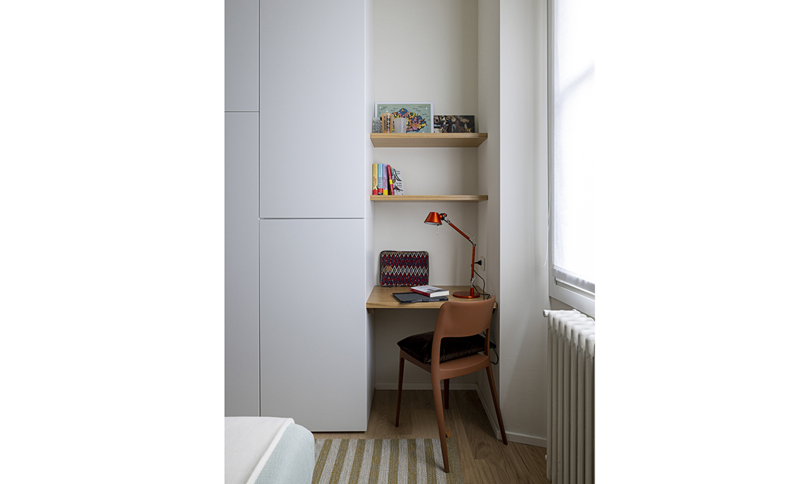 Il risultato finale è uno spazio compatto ma in equilibrio tra funzionalità e stile: pattern, colori e materiali lavorano insieme per costruire un interno contemporaneo, capace di raccontare la personalità di chi lo abita e di dimostrare come anche un ex spazio professionale possa trasformarsi in una casa accogliente, vivace e su misura.