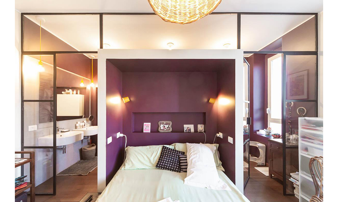 «Il progetto della camera è opera dell’architetto Cristina Meschi: ha capito subito che con noi poteva osare e ci ha proposto la suddivisione di camera e bagno fatta con una parete a vetri, che ha permesso di sfruttare al meglio lo spazio e avere un bagno grande» racconta Albertina.