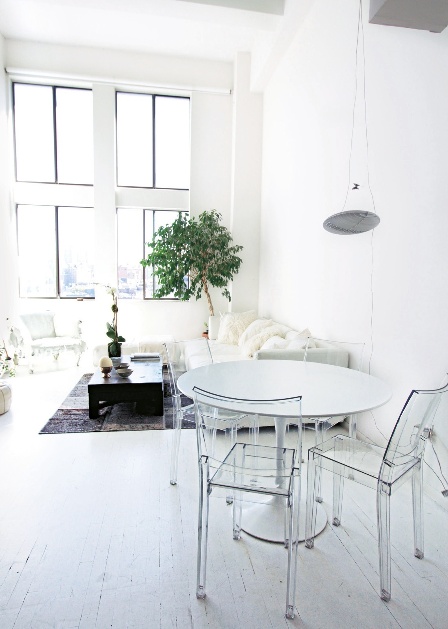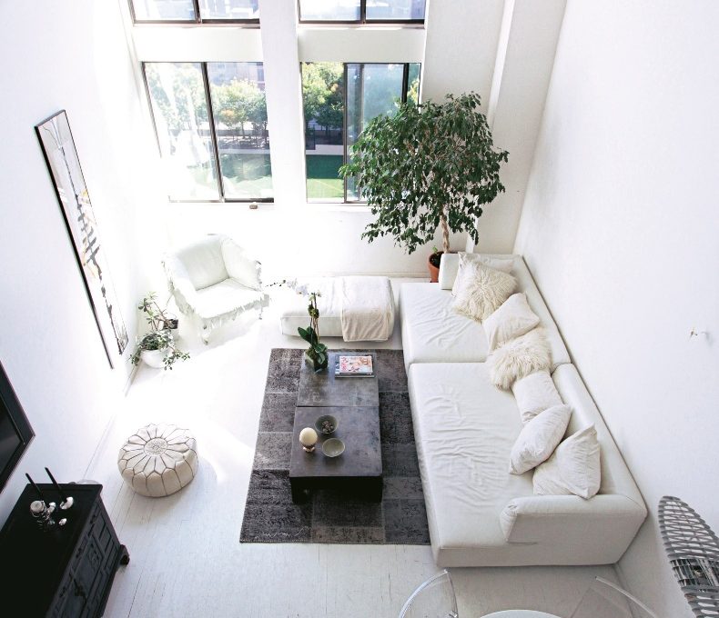 Il vivace ed elegante quartiere di West Village, a un passo dal fiume Hudson, si è rivelato la  scelta più appropriata per Giuliana. Ha trovato un ‘one bedroom’ (un piccolo open space con soppalco) nel ‘Printing House’, un palazzo degli Anni Venti molto conosciuto nel ‘Villaggio’ per le sue grandi facciate in stile Rinascimento italiano: il minimo, per una toscana di origine! Dalle grandi finestre del suo  appartamento si gode della vista  della skyline di Manhattan e l’appartamento si inonda di luce, anche grazie ai soffitti a doppia altezza. Un vero gioiello di abitazione, che nelle sapienti mani di Giuliana è diventato ancora più prezioso! Quando lo ha scelto, però, l’appartamento era in (brutto) stile Anni ’60. Giuliana lo ha rivoluzionato svecchiandolo e dandogli una sua precisa personalità con la scelta del total white, per dare all’ambiente ancora più luminosità e allinearlo al proprio stile: superfici un po’ ‘raw’ (grezze), essenziali e senza troppi fronzoli, proprio come i suoi gioielli.