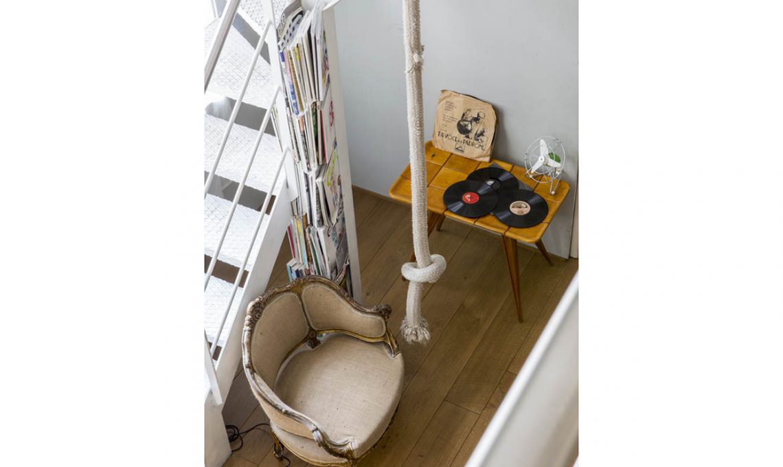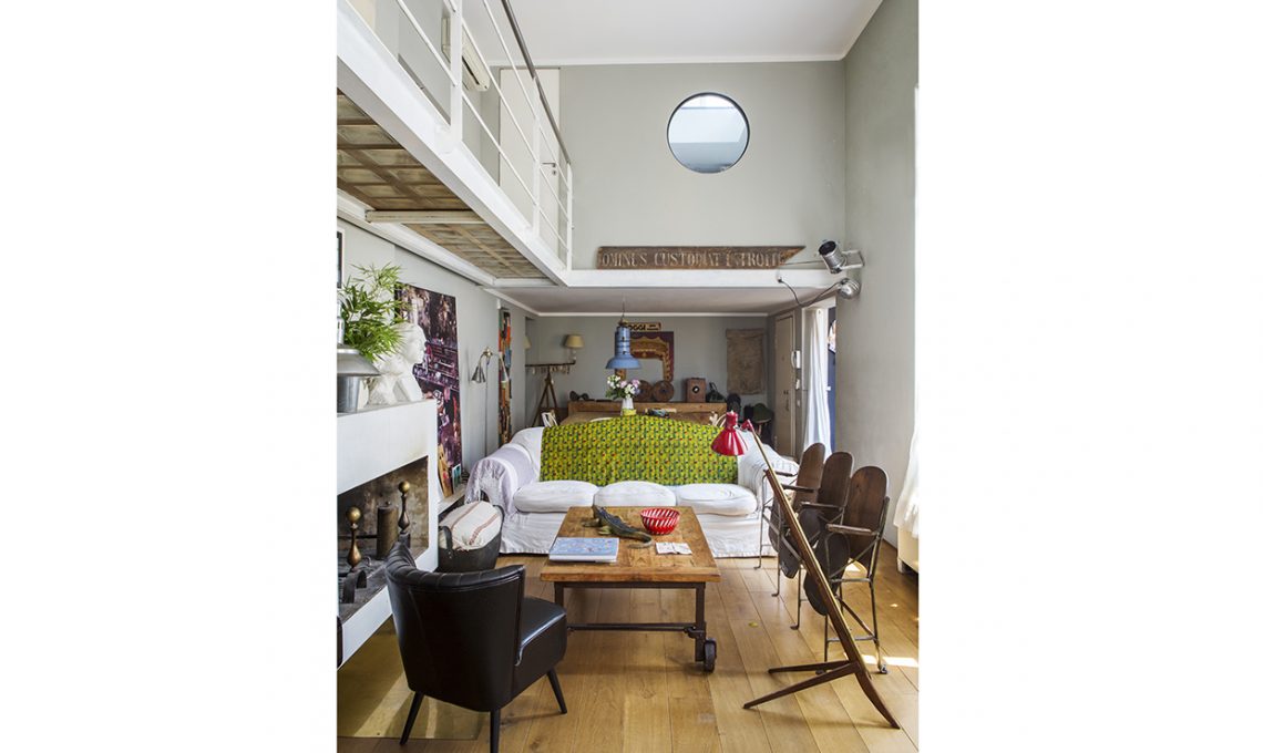 ll living ha tutto il fascino dei loft di città e il mood allegro e ‘spettinato’ di chi ama vivere una casa in modo creativo. La proprietaria di casa gira per mercatini e negozi dell’usato fin da bambina. Il grigio delle pareti fa risaltare ogni cosa: l’essenza grezza degli arredi, i libri, le tele dal gusto pop, i tessuti ‘sacco’ e i busti classici, il camino e il pianoforte. Una vera family-home.