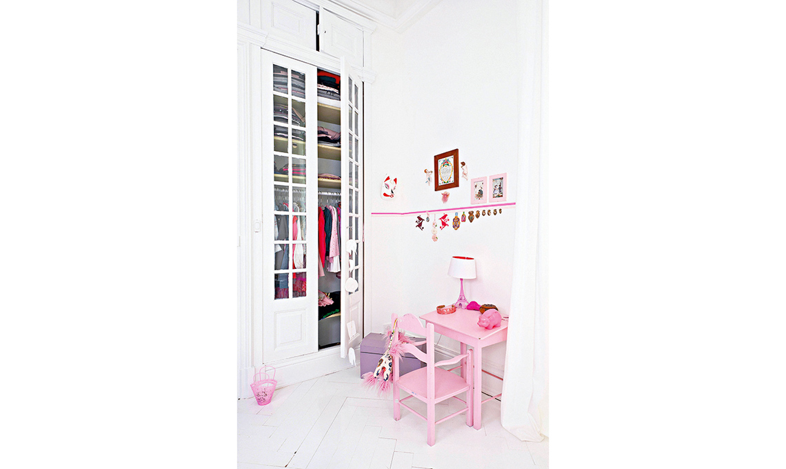 Pur conservando tutte le caratteristiche dell’appartamento in stile Haussmann, Sandrine e Hervé hanno giocato con grande libertà: troverete, in questa casa speciale, idee décor che sembrano installazioni d’arte, dalle lampade ricavate da caraffe di cristallo, alle console barocche, fino alle strisce di colore adesive o dipinte...