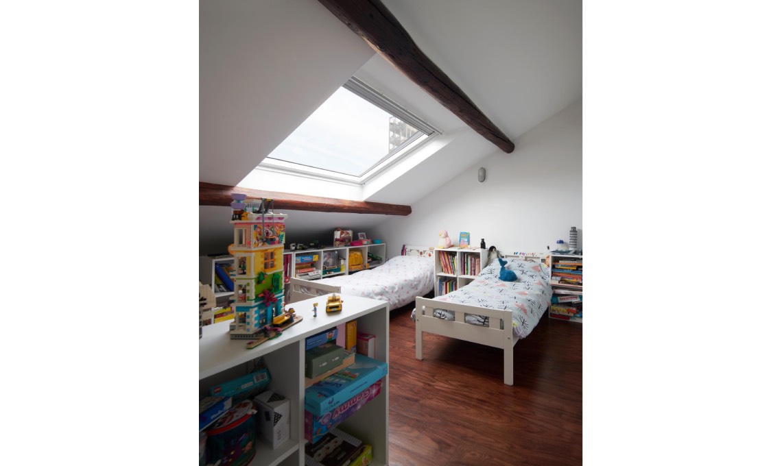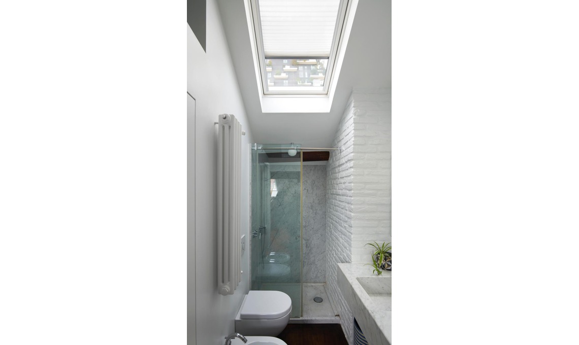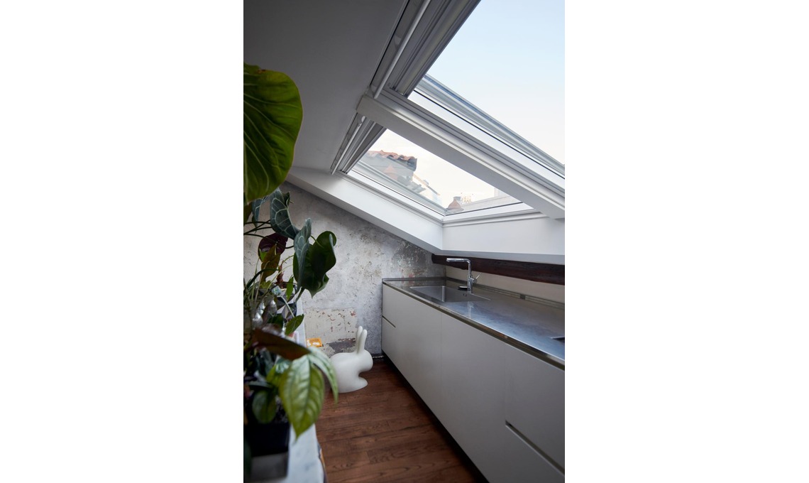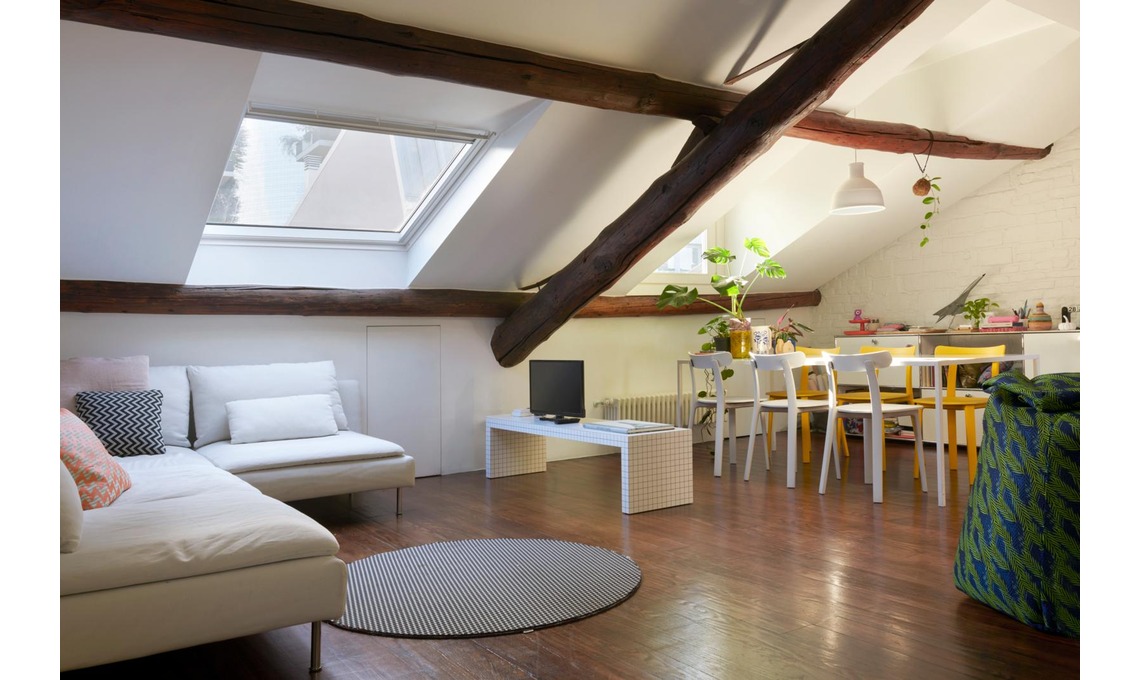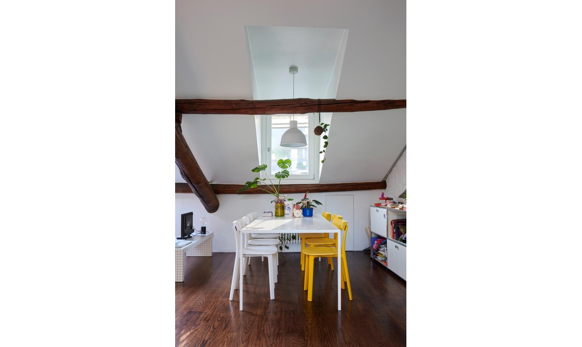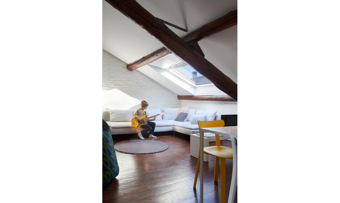 Siamo a Milano all’ultimo piani di una palazzina dei primi ’900 ‘all’ombra’ del Bosco Verticale: un sottotetto, già precedentemente abitato, è stato ristrutturato da Sergio allo scopo di trasformarlo nella casa per la sua giovane famiglia.