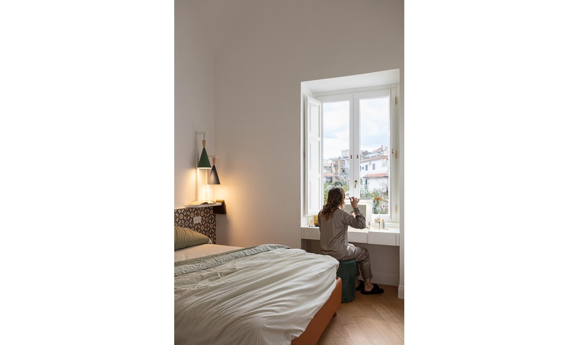 Benvenuti in questo appartamento che si trova all’interno di un palazzo nobiliare di fine ’800, nella Penisola Sorrentina. Ci vive Paola che, sempre in giro per lavoro, per quando ritorna a casa desidera un ambiente rigenerante e di charme, ma con spazi fluidi e multifunzione.