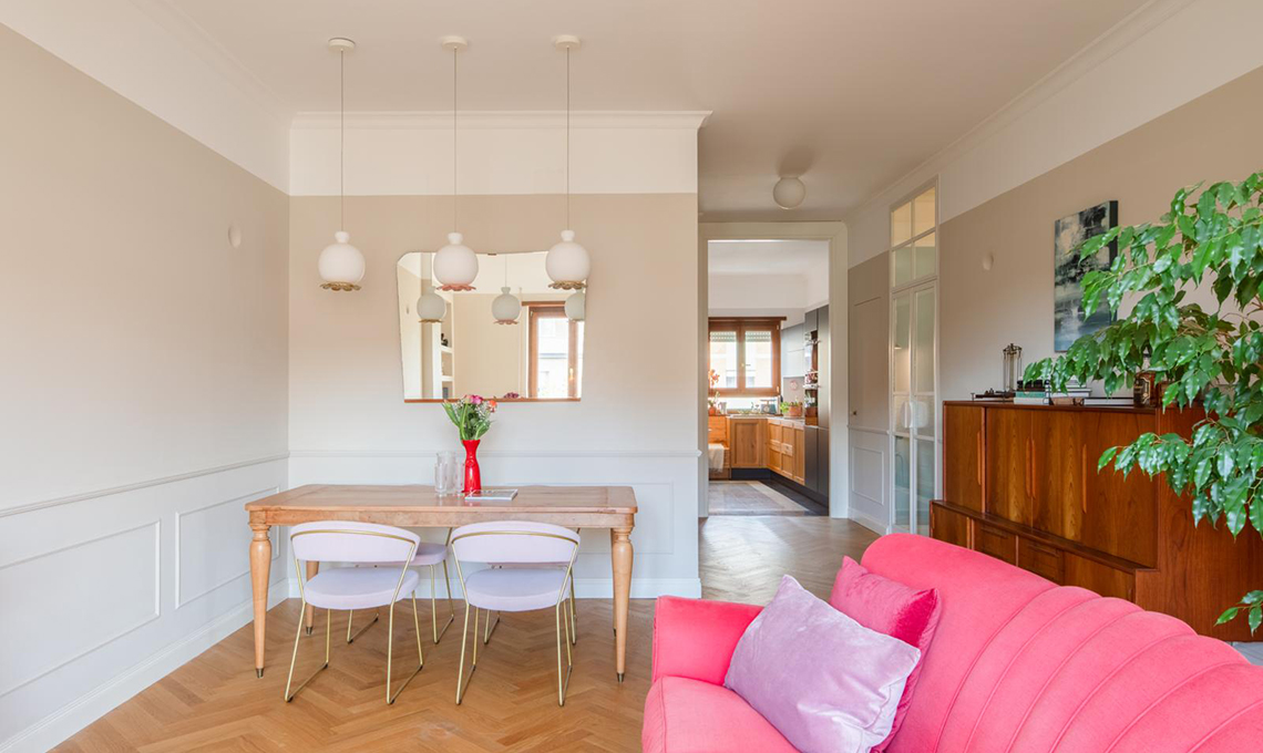 Come 'cucire' addosso alla nuova proprietaria la casa di famiglia Anni '60? Ridisegnando gli spazi per renderli più funzionali e scegliendo una palette e uno stile un po' British che faccia da trait d'union fra il passato e il presente.
