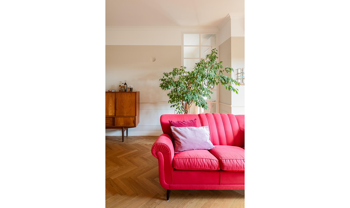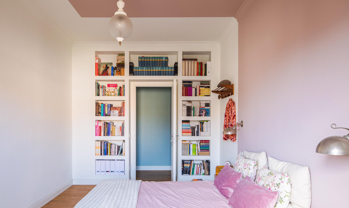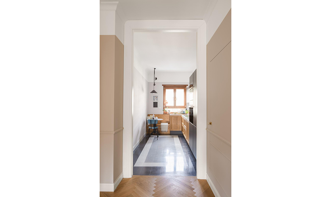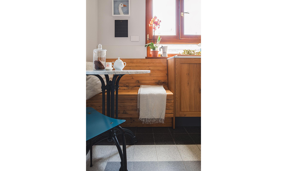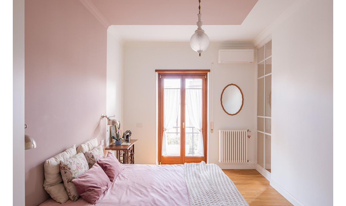 I pavimenti che richiamano quelli originali, insieme agli infissi su misura vetrati che fanno passare la luce e alla palette di colori pastello, hanno dato vita al guscio ideale per accogliere i pezzi di famiglia, valorizzati come Manuela desiderava da tempo.