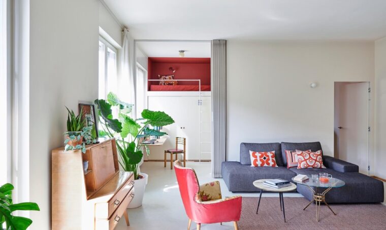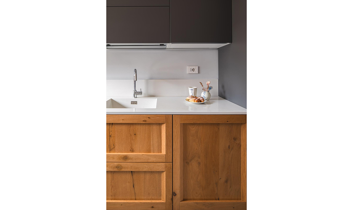 L’architetta Francesca Pierucci ha spostato la cucina accanto all’ingresso e quest’ultimo è stato unito al soggiorno per creare un unico ambiente, ma con funzioni distinte. Poi ha riproporzionato le stanze della zona notte ricavando, oltre alla camera, una cabina armadio attrezzata su due lati e uno studio.