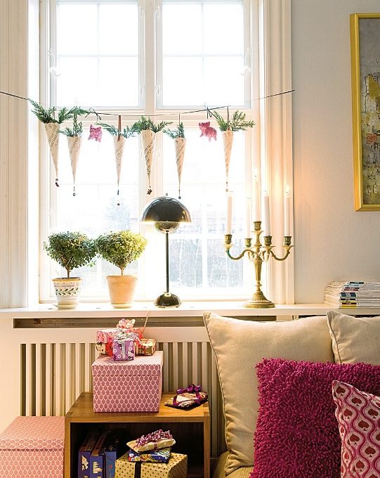 Sono così piacevolmente ‘vuote’ e chiare, le case nordiche... ma sono tutto fuorché impersonali, perché si prestano a fare da scenario alla fantasia e alle stagioni. e nel periodo natalizio (che al Nord, con il ‘lungo buio’, dura da novembre a gennaio...) gli allestimenti raggiungono il clou. Heidi, la proprietaria di questa casa è rientrata in Danimarca dopo tanti anni all’estero (prima a Dubai e poi a Hong Kong) con il marito e i due figli. e soprattutto per i piccoli Maja e Rasmus, complice la nonna, ama adesso riscoprire le tradizioni (e i dolci) della sua infanzia. Quest’anno poi, si inaugura la casa nuova e lei ha invitato tutta la famiglia. il calore della festa è già nell’aria tra i mobili e le lampade di design storico e il vintage. Nella veranda-living, l’albero di Natale è un’esplosione di colori, tra pigne e cuori: Heidi, com’è di buon augurio da queste parti, l’ha addobbato con qualcosa di vecchio e qualcosa di nuovo, qualcosa che brilla e qualcosa di opaco. Un gioco di contrasti, che è un po’ il vero trucco del suo stile.
