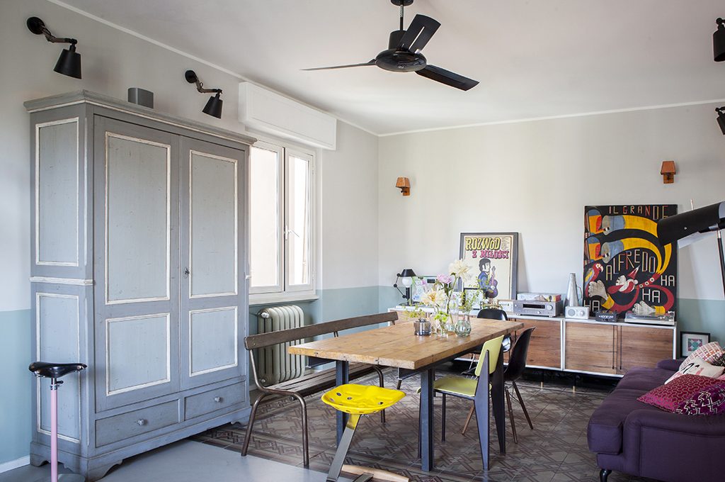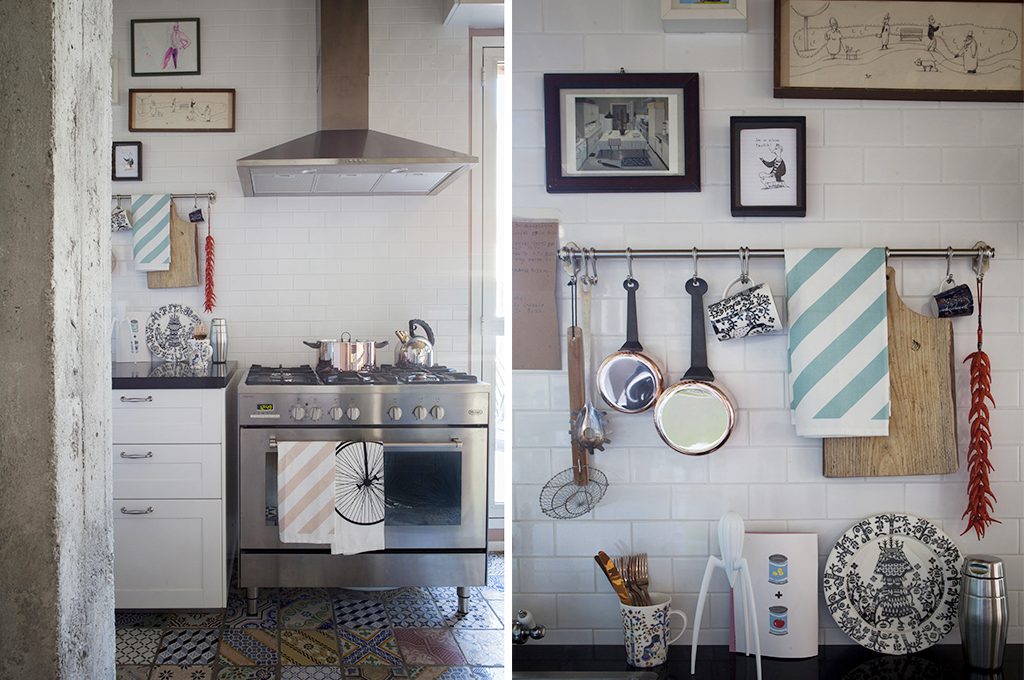 La casa doveva somigliare a una vecchia osteria di città, ricordare a tratti le atmosfere delle abitazioni del Trentino, l’informalità tipicamente svedese... ma non solo. «Il pavimento della cucina arriva dalla Sicilia e assembla venti fantasie diverse. Io e Gianmarco abbiamo passato una notte intera, quando la casa era ancora un cantiere, a provare tutte le combinazioni possibili. Volevamo che ogni piastrella stesse bene con la vicina» dice Alice. Il risultato? È a dir poco strepitoso!