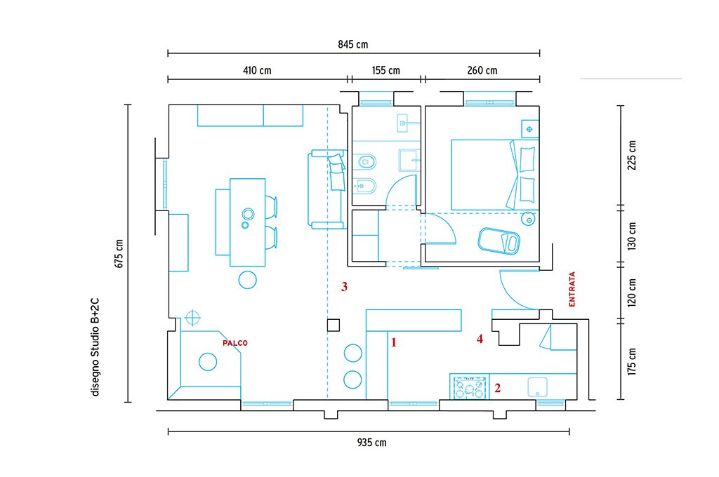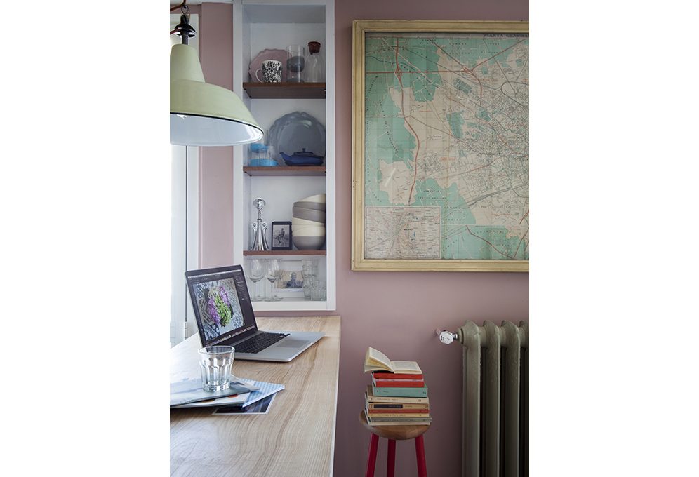 L‘area snack è resa super accogliente da una semplice nicchia porta oggetti; mentre il termosifone di ghisa e la cartina di Milano Anni ’50 fanno ‘stile‘.