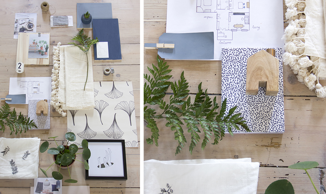 La moodboard dell’appartamento è giocata sui colori e i materiali: legno grezzo, fibre di cotone e dettagli vegetali. Tazzina “2” [Design Letters €40 il set da 4], casetta porta-candela [Tiger].