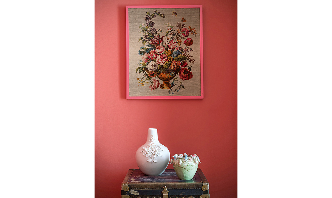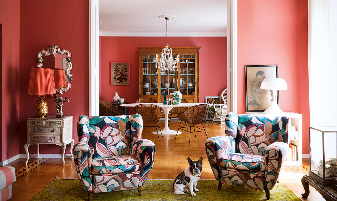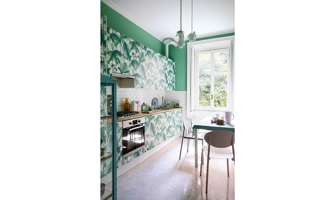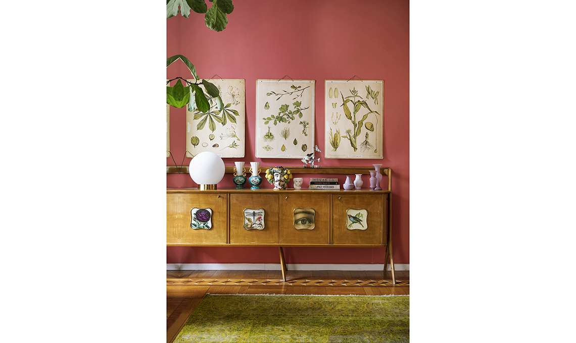 Una palette intensa e audace, che abbina il rosa corallo ai verdi, veste le stanze ricche di personalità. Fil rouge del restyling è la carta da parati che incornicia l’ingresso, crea divisori visivi ed estetici e reinterpreta i mobili con uno stile davvero unico.
