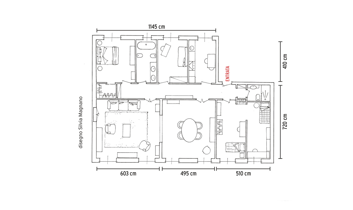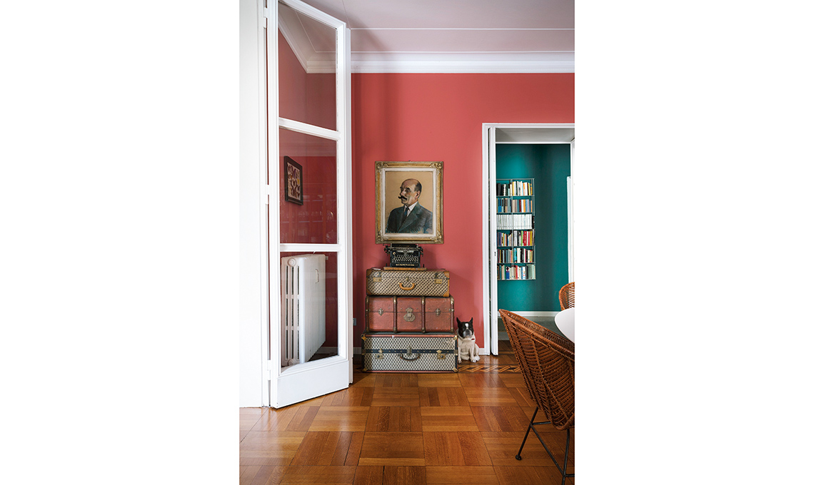 Le modanature e gli stucchi originali alle pareti, la vetrata, i serramenti d’epoca, il parquet intarsiato: Stefania ha lasciato tutto com’era. «Gli spazi erano già abbozzati, bisognava solo trasformare lo schizzo in disegno e saperlo ‘dipingere’» racconta. «Per me la casa è come un quadro da colorare, da ammirare e vivere tutto d’un fiato».