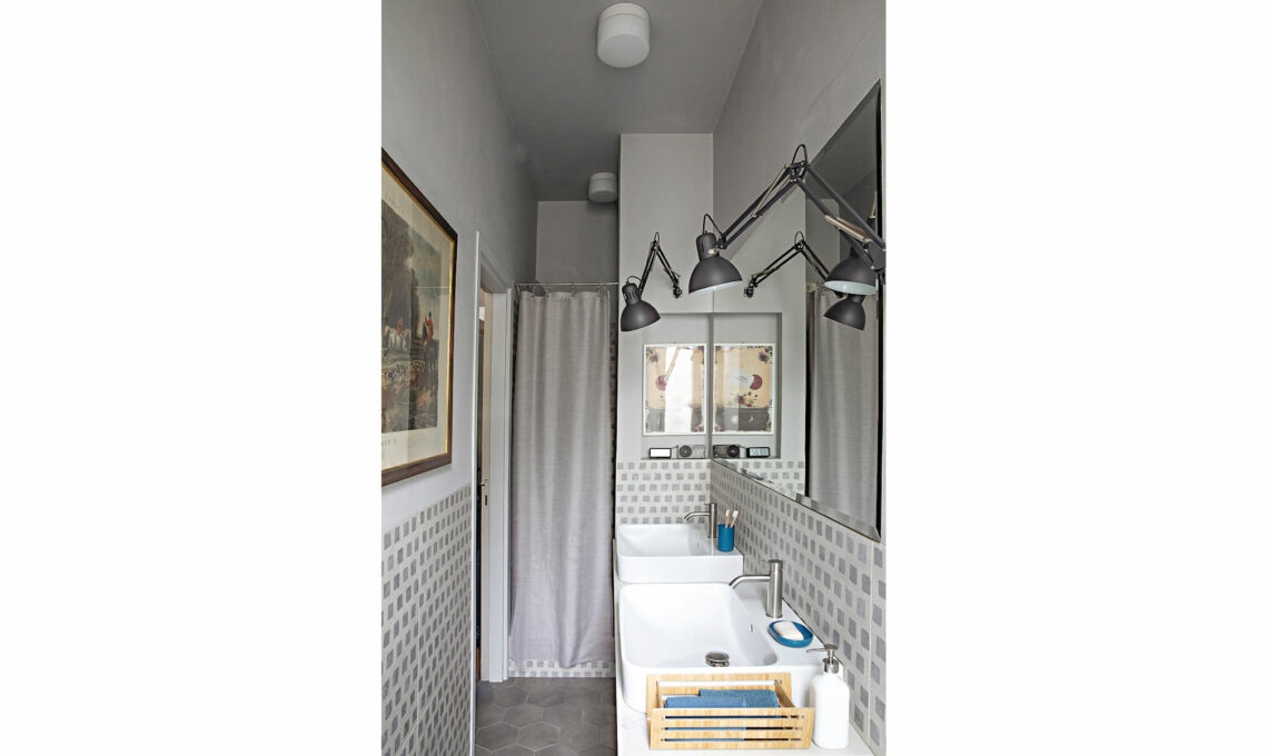 Le porte originali erano a vetri: quelle dei ripostigli sono state rese ‘cieche’. Applique Foglio [Flos €490].