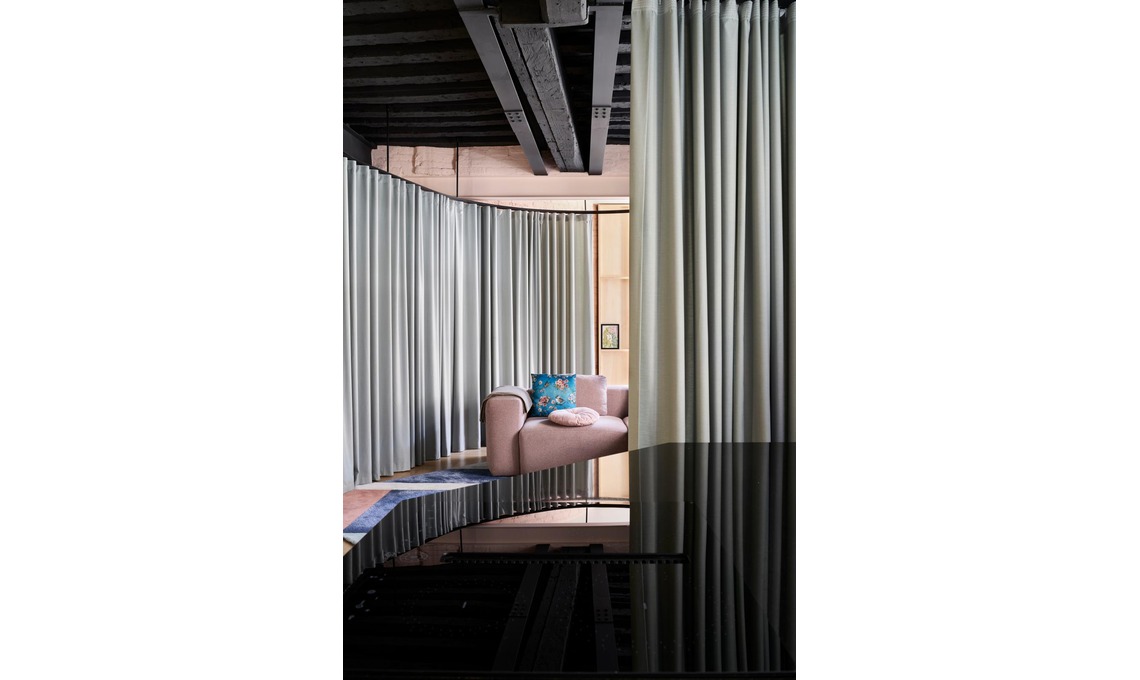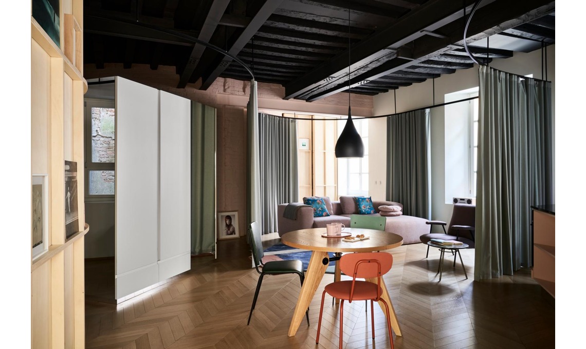 Addossata all’abside di una chiesa, questa casa ha una parete curva che ha sfidato il progettista. La soluzione? Un gioco di stanze fluide con tendaggi e non muri. E la proprietaria dice: «Sono come un abbraccio»...