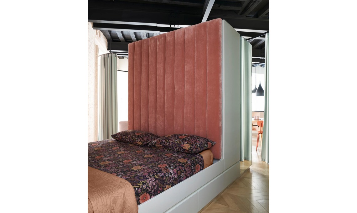 fa da testata del letto nascondendolo alla vista da