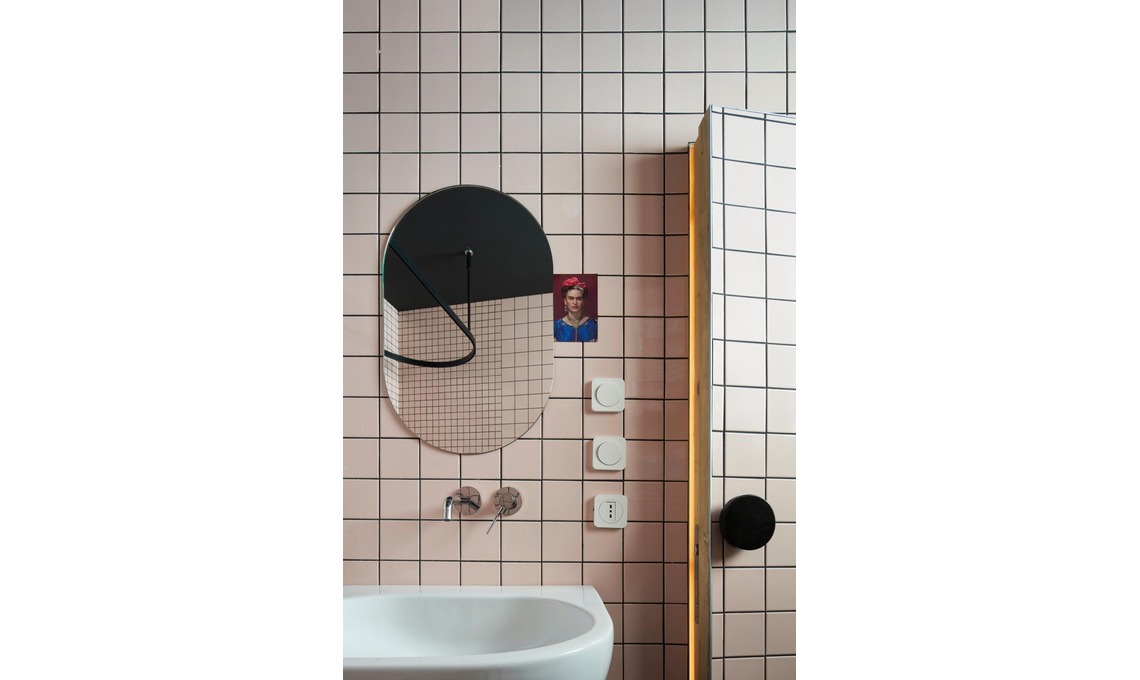 Lo spirito eclettico di Alessandra si ritrova in ogni angolo di questa casa davvero unica: «Uno spazio che mi somiglia, indipendente, versatile e pronto a nuove narrazioni» ci dice. E anche la sua storia è unica: siamo a Reggio Emilia e qui dormiva il pescivendolo della bottega al piano terra, in attesa dell’alba per ritirare la merce al mercato di S. Prospero. Non solo: una delle pareti, quella curva, è il retro dell’abside della chiesa adiacente!