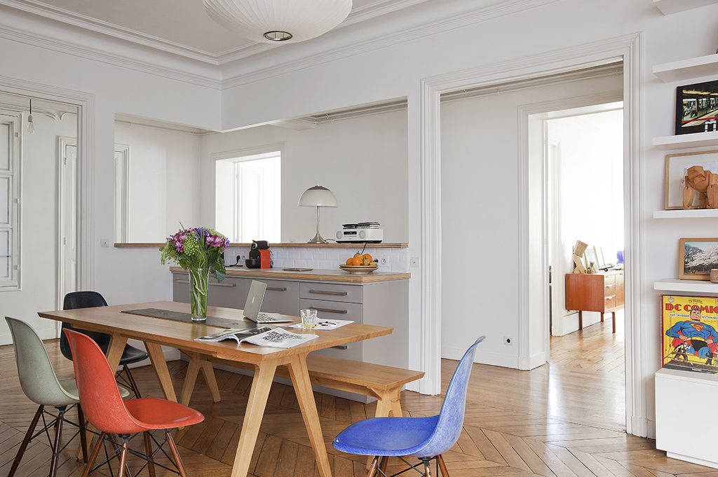 A Parigi un appartamento con ambienti aperti effetto open space, pezzi di design e ricordi di viaggio