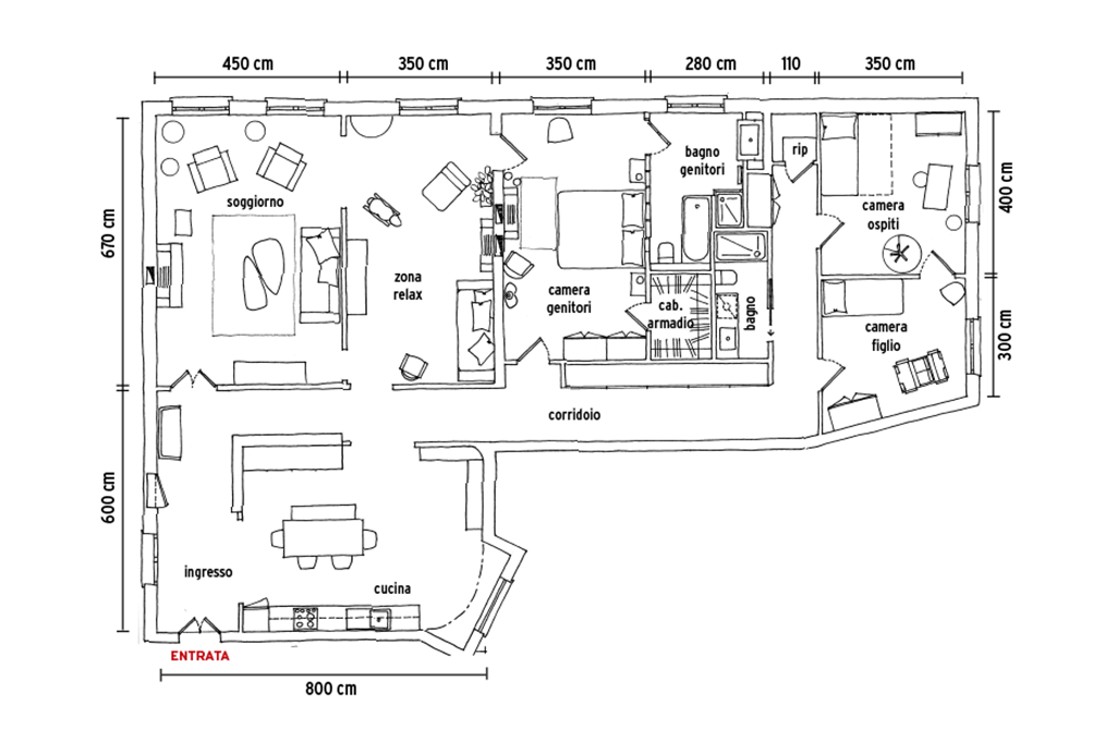 enlightenedLa cucina crea un effetto open space: le porte sono state eliminate ed è stata aperta una grande finestra tra la zona pranzo e il corridoio.